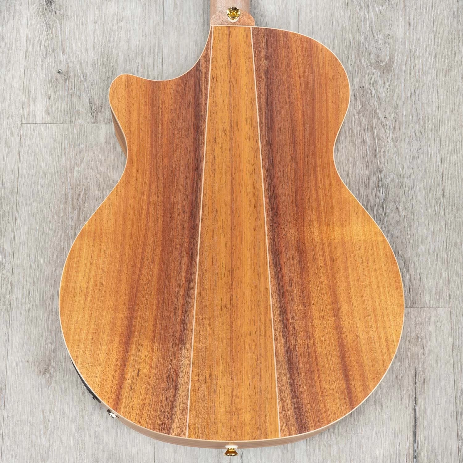 The added humbucker is routed to a completely separate output jack that should ideally be run to your electric guitar amp for uncompromised electric guitar sound to blend with, loop or sit under your acoustic tone. The guitar also features a switch to easily switch from acoustic to electric or blend both together.