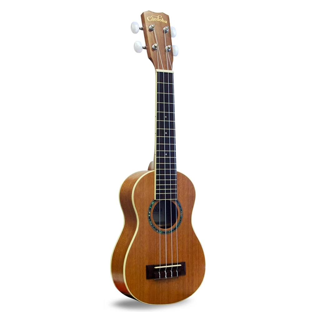 The Cordoba 15SM is a soprano size ukulele that features a mahogany top, back and sides. The fingerboard and body are bound with ivroid binding giving this entry level ukulele an elegant, old world appearance. Unlike most instruments in this category the Cordoba 15SM is designed to have an authentic abalone rosette and satin finish that make this an exceptional ukulele for the both beginners and enthusiasts alike. Completely handmade.