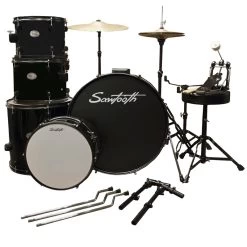 Sawtooth ST-RISE-DS-BLK Full Size Student Drum Set W/ Hardware & Cymbals, Pitch Black