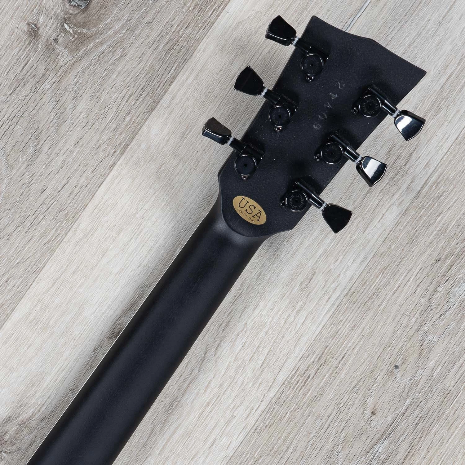 For this one, we went with a pair of hot but balanced Direwolf pickups that will hit your pedals and your amp with a solid punch without being so overwound that limits the versatility of the guitar. The neck is extraordinarily playable and the satin finish allows your hands to just fly up and down effortlessly. The amazing fretwork and overall construction of this allows for very low action without having to worry about fret buzzing.