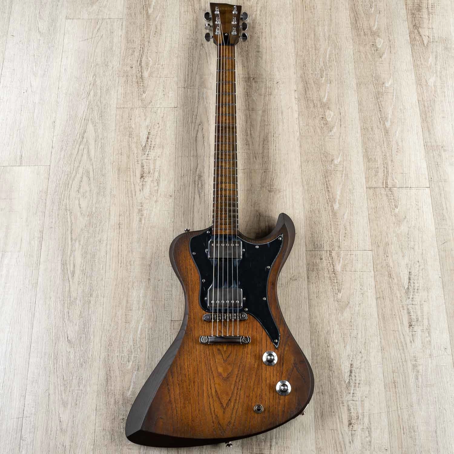 The R2 is a pure rock machine. The body shape is an awesome take on an offset vibe. This one comes loaded with Direwolf pickups for an aggressive, but balanced tone. Whether you’re going for blues, classic rock, heavy metal, or anything in between, these pickups give you the versatility you need. The swamp ash body and maple neck will add some nice brightness to the tone that will allow you to cut through and remain articulate even when loaded up with heavy saturation. The neck is extraordinarily playable and the perfect thickness without feeling like a toothpick in your hands. The satin finish allows your hands to just fly up and down effortlessly. The amazing fretwork and overall construction of this allow for very low action without having to worry about fret buzzing.