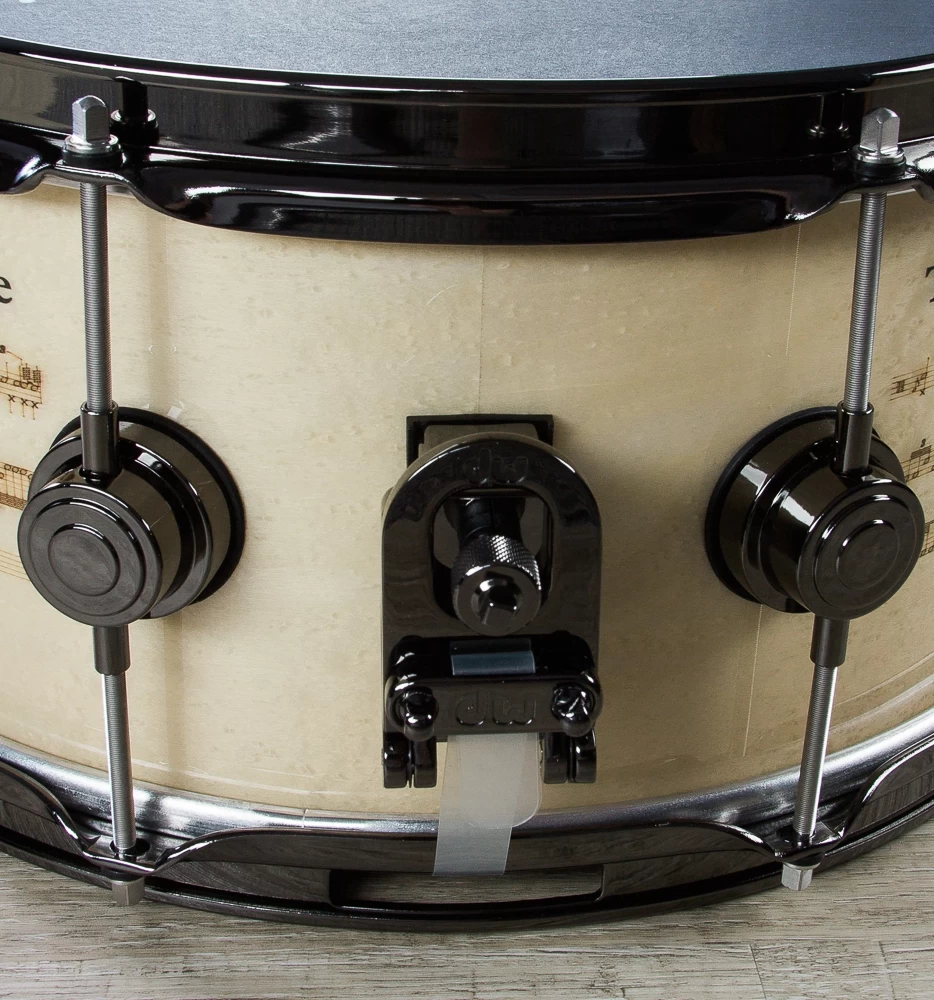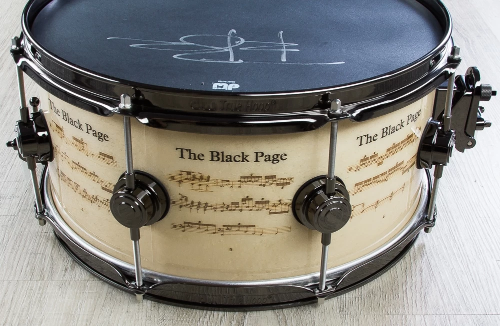 Written expressly for Terry Bozzio, “The Black Page” has become the stuff of legend among the drumming community. The notorious notation is laser-etched into Exotic White Birdseye Maple and the titles and iconic Zappa moustache is hand-inlayed with dyed-black Pearwood on this limited edition snare drum. The snare drum also features an 11-ply North American Hard Rock Maple shell. Also outfitted with special REMO Black Suede® heads and black nickel hardware, this limited edition drum comes complete with deluxe DW carrying case, certificate of authenticity, and Mr. Bozzio’s signature. Only 250 will be made worldwide.
