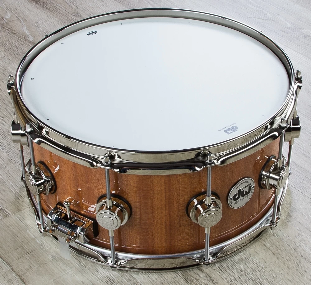 DW Drum Workshop Collector’s Series Natural Lacquer Over Maple/Mahogany Snare, Nickel Hardware (6.5″ x 14″)