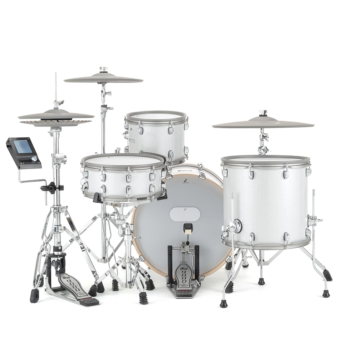 20 x 15″” kick drum and 14 x 5.5″” snare drum with white sparkle finishes that shine brightly on stage. 14” real hi-hats and unparalleled 20″” ride cymbal…Everything is for fascinating you and your audiences.