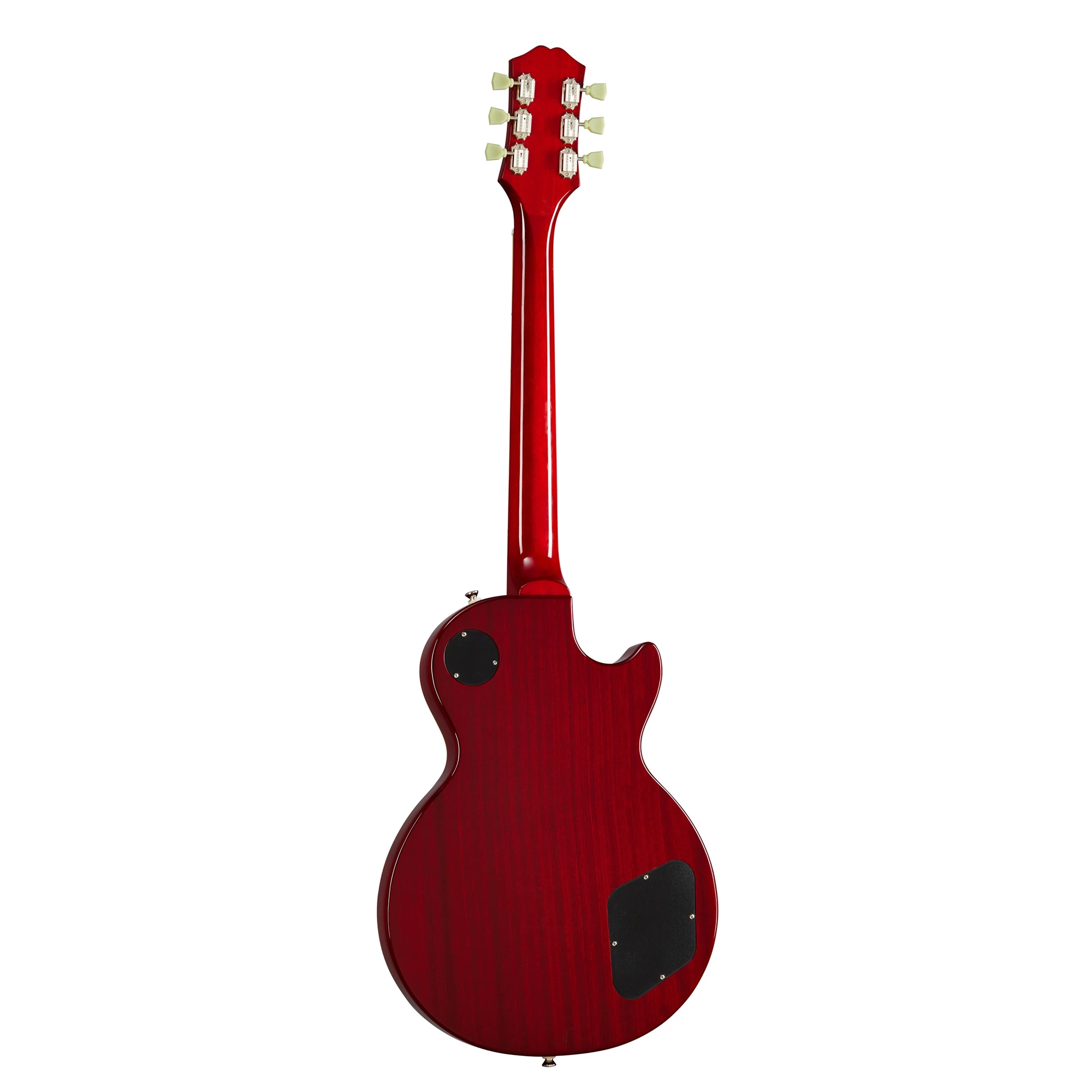Epiphone’s new Inspired by Gibson™ Collection proudly presents the Les Paul™ Standard 50s! This guitar lovingly recreates the feel and tone of the 1950s era Les Pauls. Epiphone’s long friendship with Mr. Les Paul began in 1940 when Les built one of the world’s first solidbody electric guitars while working nights at the original Epiphone factory in Manhattan. Les’ first solidbody guitar, nicknamed “the Log”, would go on to inspire the Les Paul Standard, which many consider the greatest electric guitar ever made. The guitar is crafted with a mahogany body, maple cap (AAA veneer on figured tops), bound 50s shaped mahogany neck with long neck tenon, Indian laurel fingerboard with classic trapezoid inlays, Epiphone’s new Vintage Deluxe tuners, a pair of critically acclaimed Epiphone ProBucker™ humbuckers™, and gold Top Hat knobs with dial pointers. Available in Metallic Gold, Vintage Sunburst, and Heritage Cherry Sunburst full-gloss finishes. This Epiphone Inspired by Gibson Original model also has the Kalamazoo headstock, rolled neck for a comfortable feel, Graph Tech® NuBone® nut, era-appropriate wiring, and CTS® pots. Optional hardshell or EpiLite™ case is available.