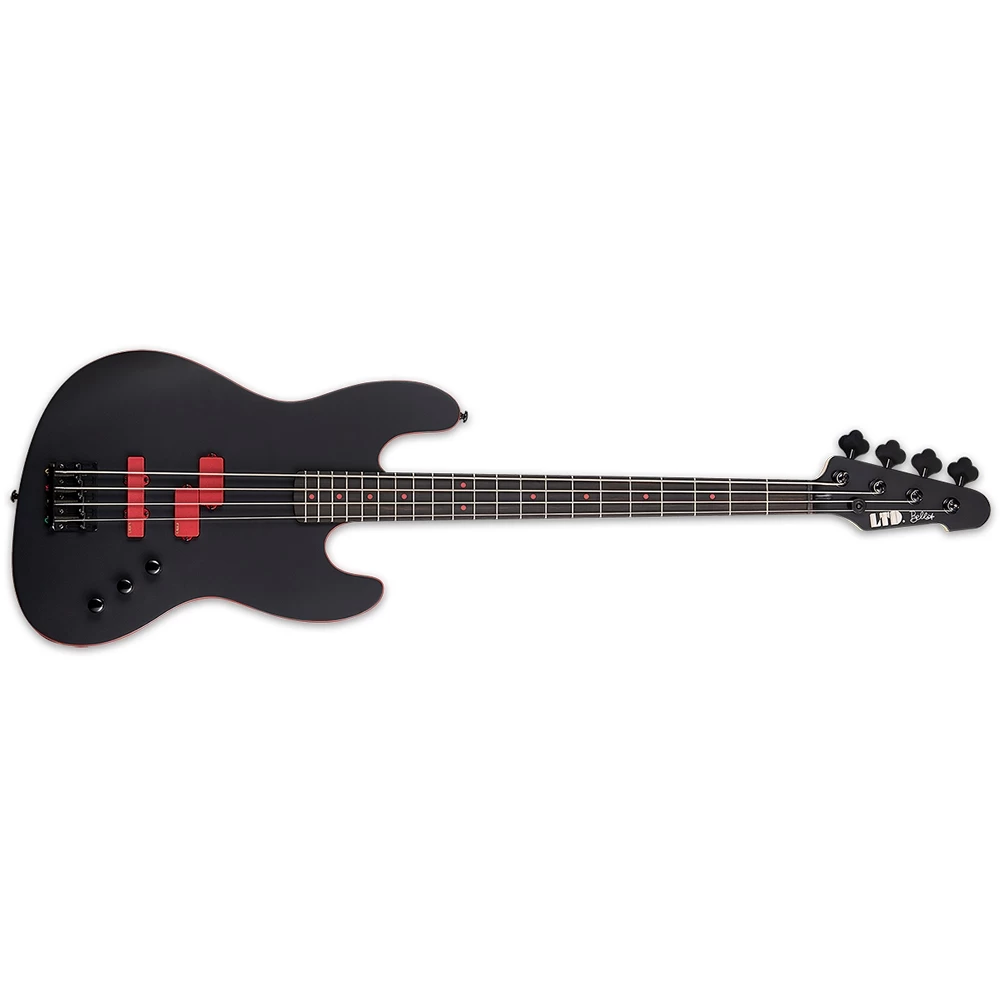 Anthrax bass player Frank Bello wanted to be sure that his LTD Signature Series bass was accessible to any bass player, not just limited to those who could afford a high-end instrument, so we created the FBJ-400, an excellent-quality bass built to Frank’s spec that’s very much within the budget range of most musicians. The FBJ-400 has classic design elements like a bolt-on maple neck with Macassar ebony fingerboard and glow-in-the-dark side markers on a mahogany body at 34” scale, and includes the excellent EMG P-HZ/EMG LJ-HZ pickups with red covers from his other signature models for sonic versatility. This bass also offers high-quality LTD vintage tuners and an LTD DB-4 bridge. Available in a great-looking Satin Black finish with red body binding and red fret markers.