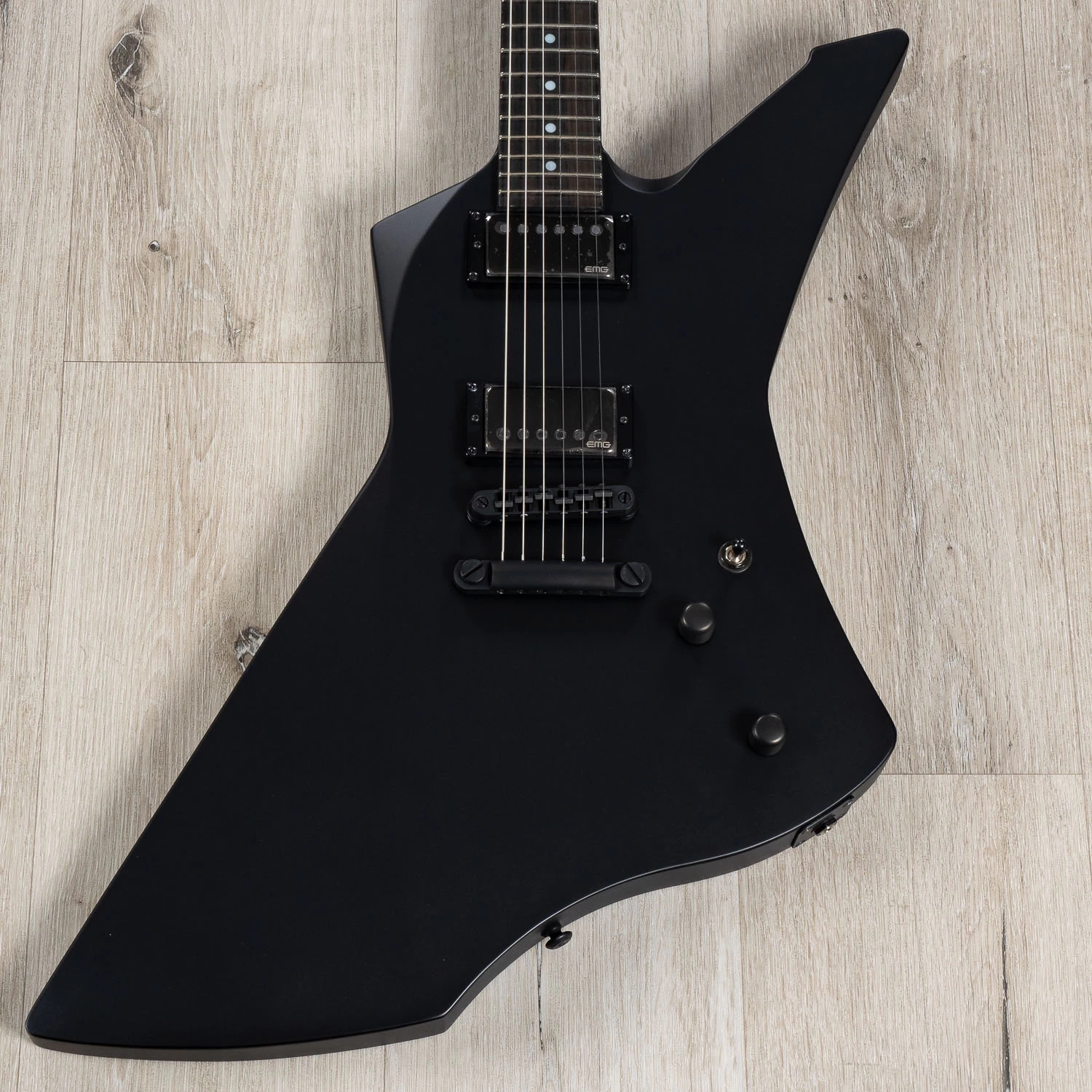The LTD Snakebyte is a Signature Series model of James Hetfield, the frontman of Metallica and one of the world’s most highly respected rhythm guitar players in any genre. The Snakebyte was created based on James’ own original design. It features set-neck construction at 24.75″ scale, with a mahogany body and a three-piece mahogany neck with ebony fingerboard and 22 extra-jumbo frets with a snake inlay at the 12th fret. The LTD Snakebyte is powered by James’ own EMG JH SET active pickups, and includes a TonePros locking TOM bridge and tailpiece.