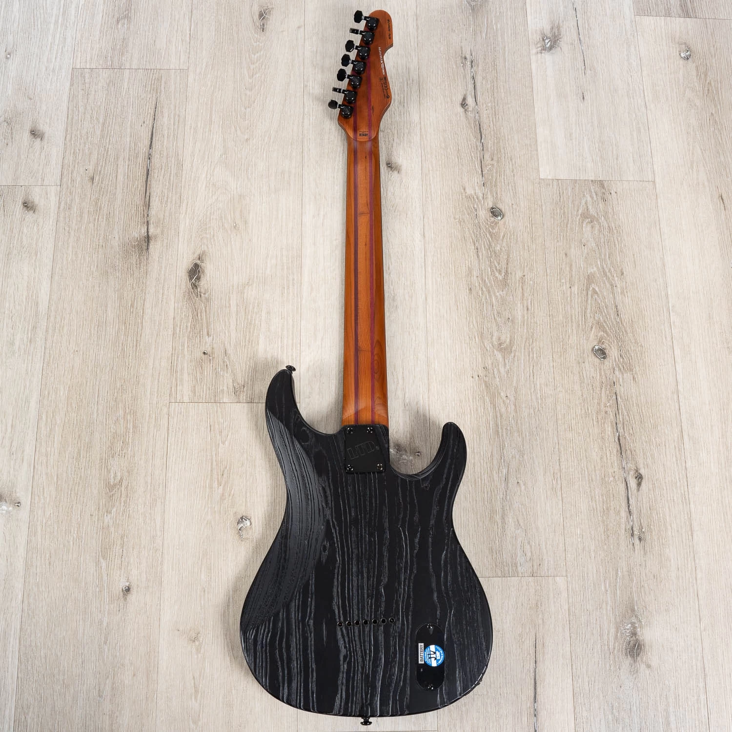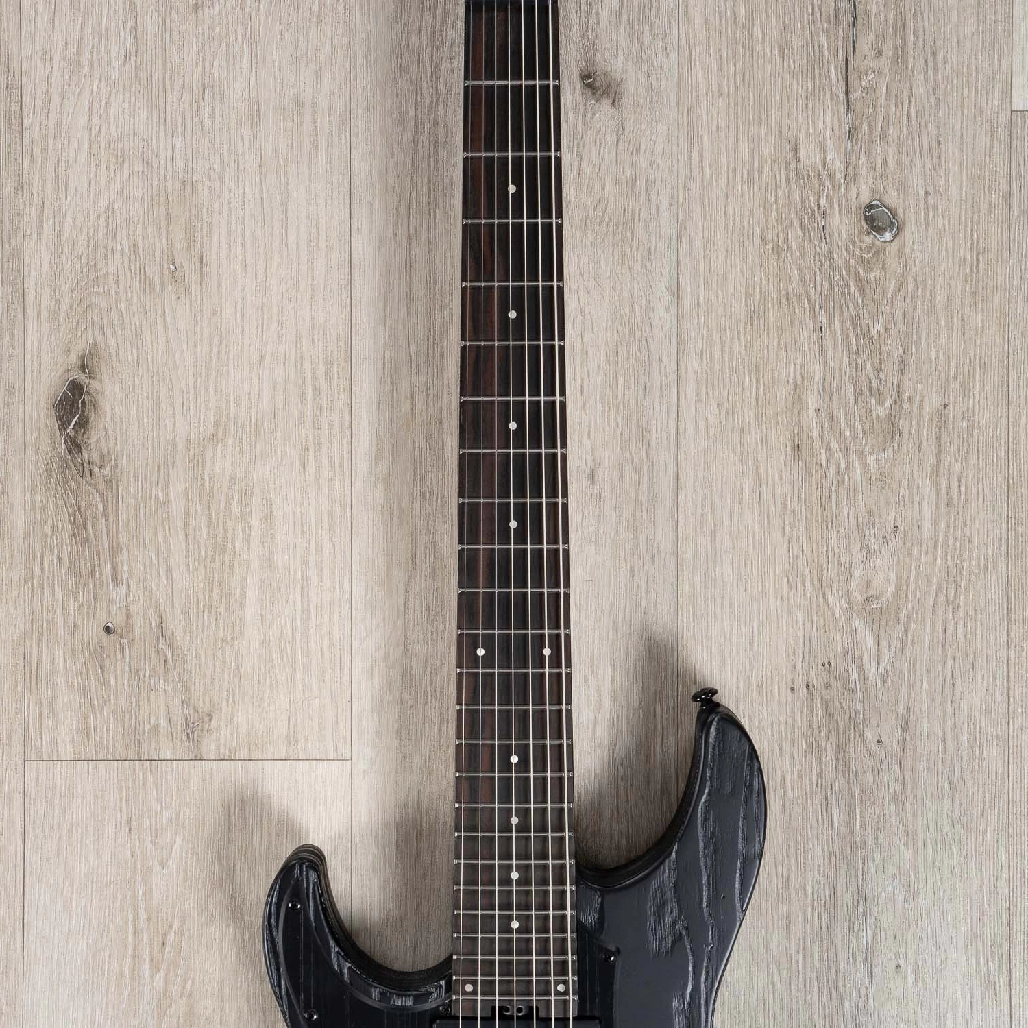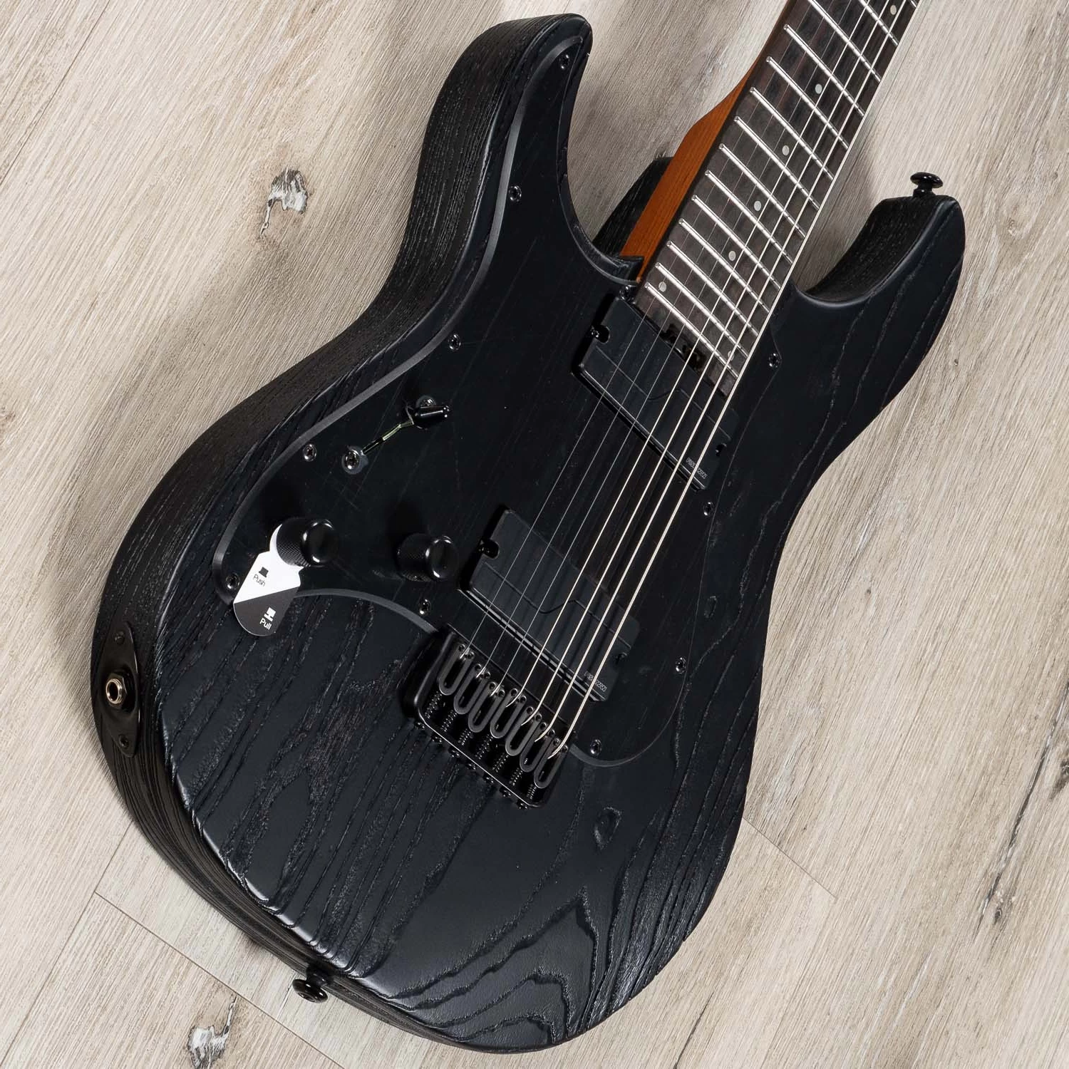We’re stoked to offer this awesome left-handed SN-1007HT 7-string baritone from ESP LTD! Here’s a blacked-out sledgehammer that’s built for high-gain, down-tuned goodness through and through. With a tonewood combination of swamp ash, roasted maple, Purpleheart, and Macassar ebony, ESP is taking no prisoners when it comes to woods that stay tight, clear, resonant and focused acoustically. Combine that with the now-industry-standard Fishman Fluence Modern humbuckers that kick butt and take names with reckless abandon regardless of the amount of gain you throw at it, you have a lean, mean metal machine.
