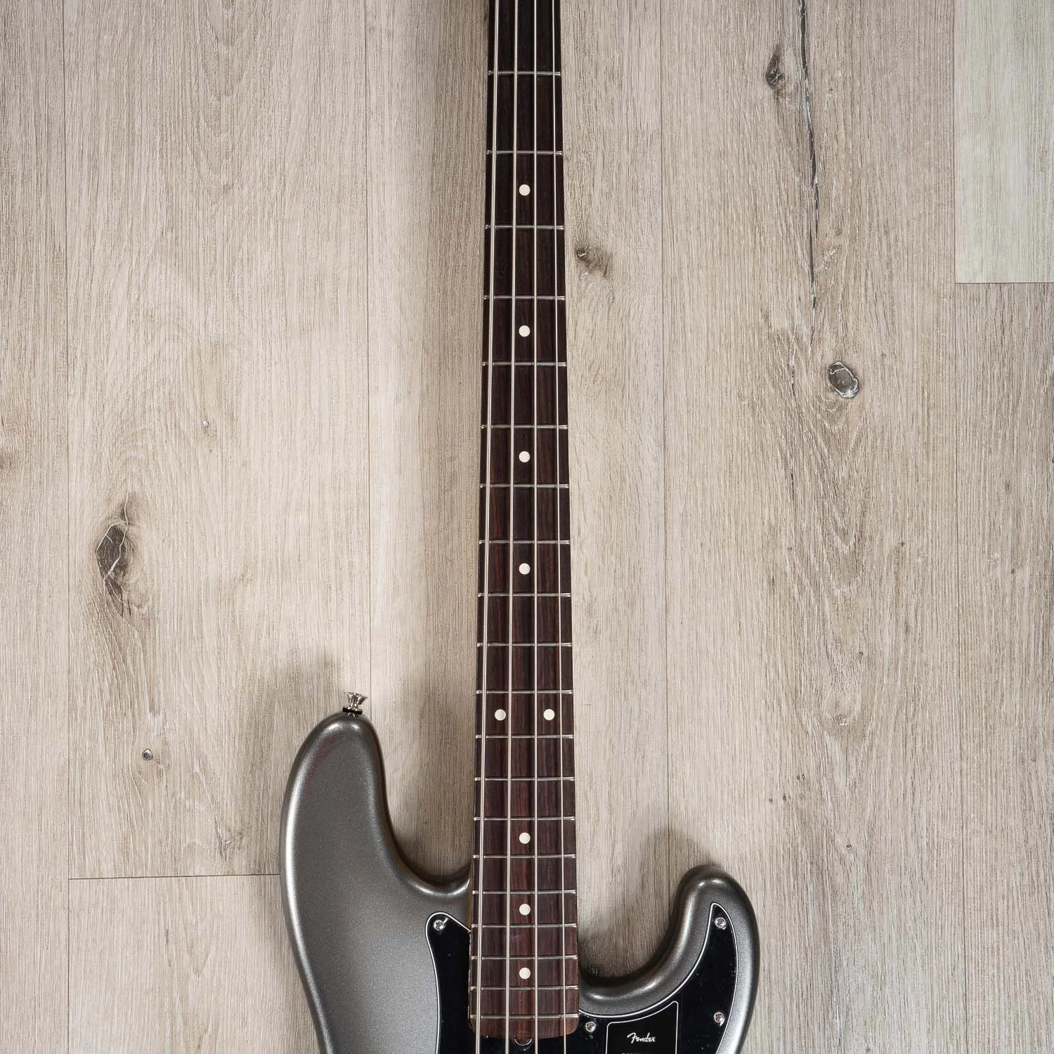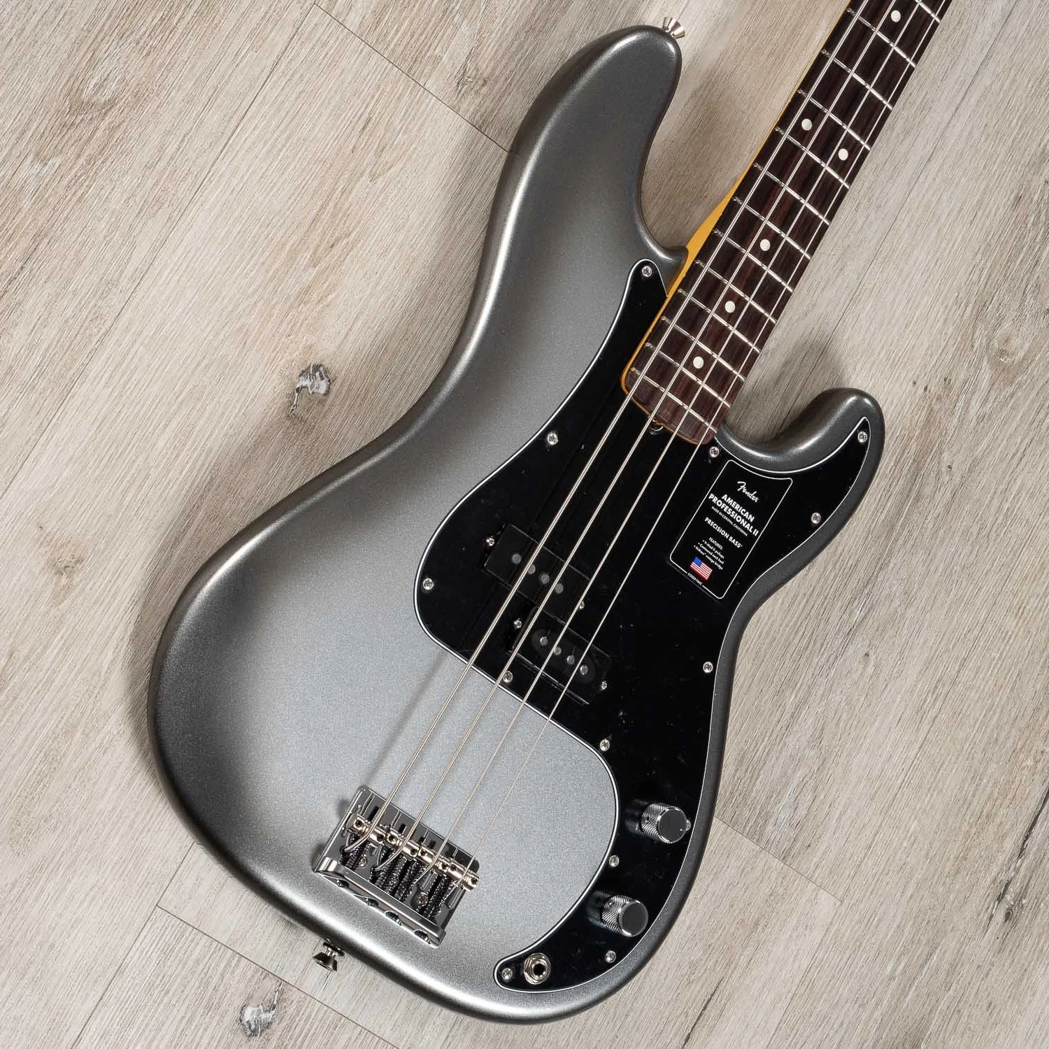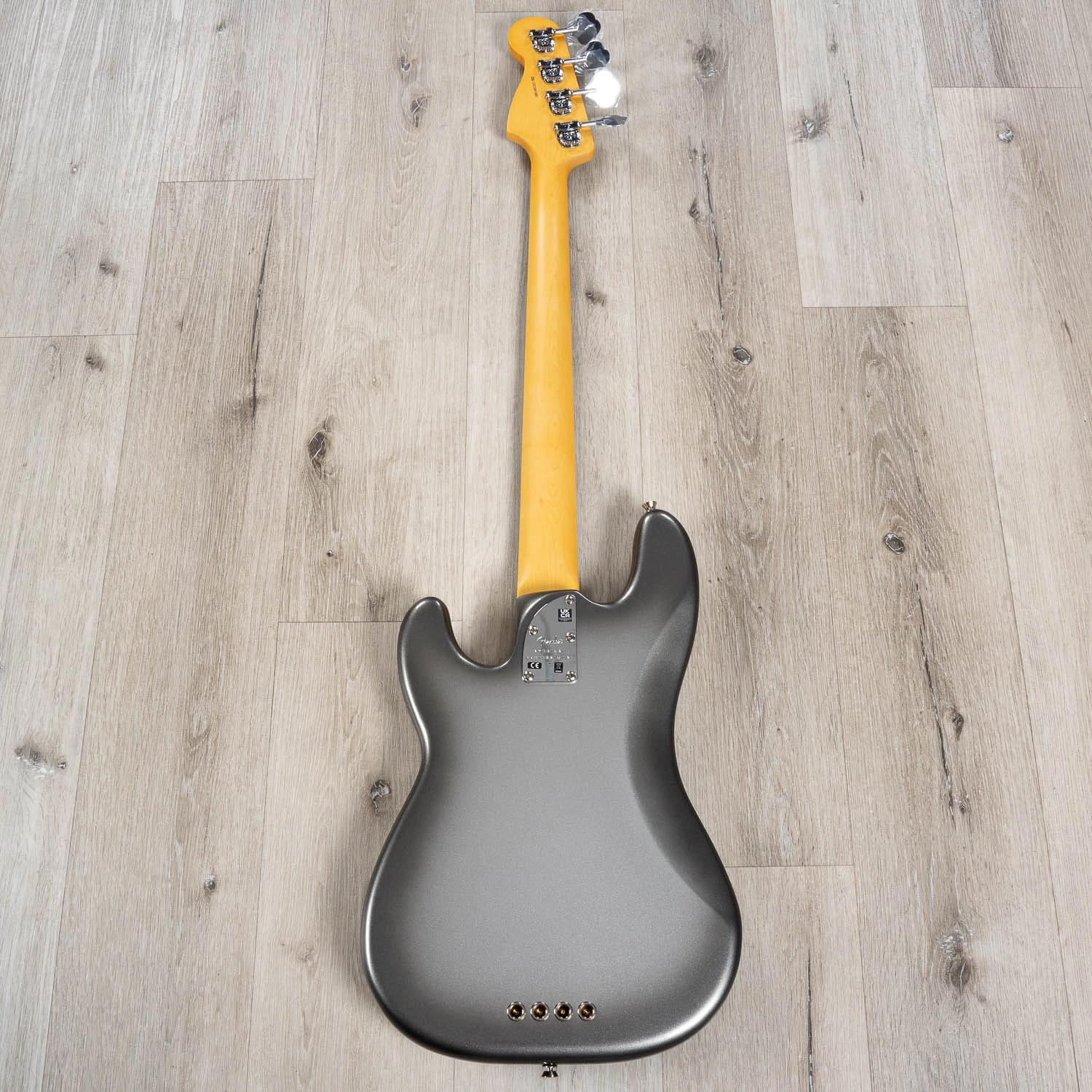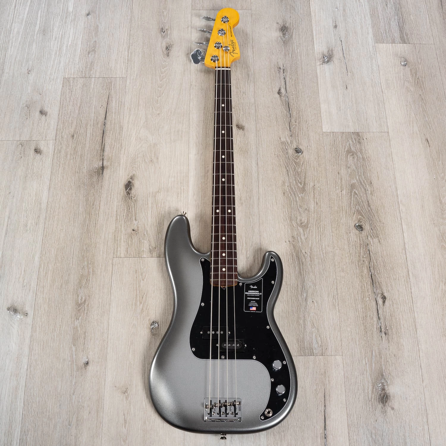 We’re proud to present this awesome Fender American Professional II Precision Bass! This one’s in a slick Mercury with a rosewood fretboard.