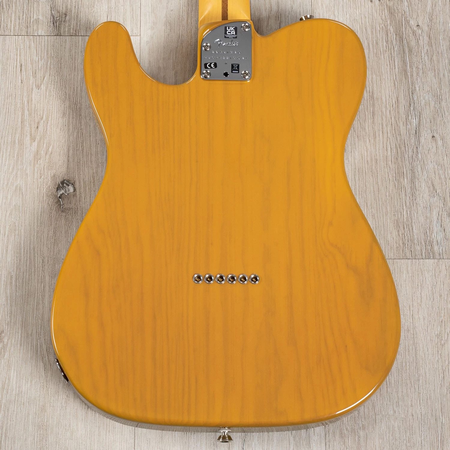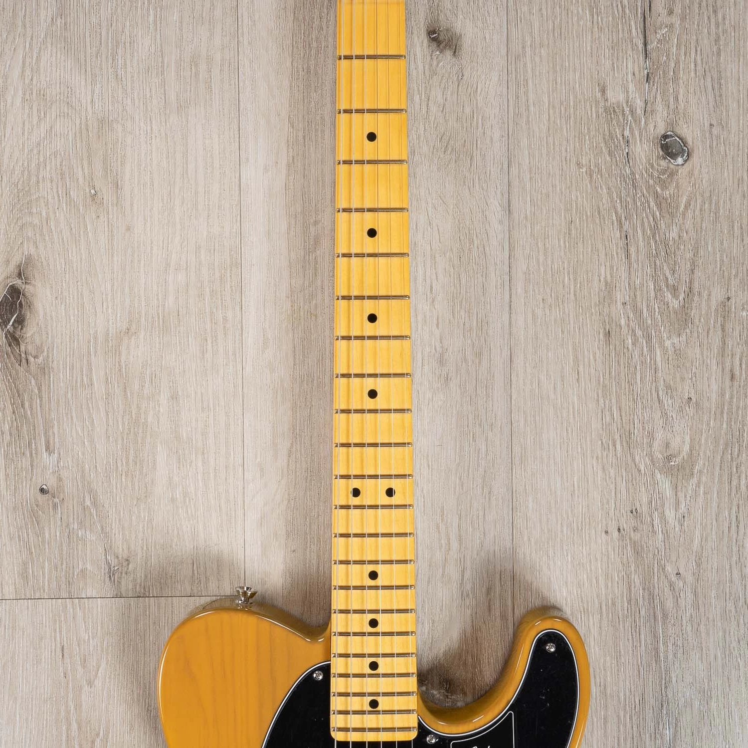 From the garage, to the local club, to the stadium/arena, this American Professional II Telecaster is the workhorse Telecaster you’ve been looking for. Right off the bat, it looks like a classic 1950s Telecaster with the butterscotch blonde finish, black pickguard, and maple fretboard. But on a closer look and under the hood, it’s been brought into the 21st century with all the features a working musician needs to succeed both in the studio and on stage. At the heart of the optimizations are the new V-Mod II pickups, which are full of vintage tone while still providing a bit more edge and punch. The difference is subtle, but effective in adding to the versatility of this classic design. The neck shape is familiar and comfortable and the resonance of the guitar is impressive, which may have something to do with being a very lightweight 7 lbs even – this Tele will be kind to your back after a long night of playing out.