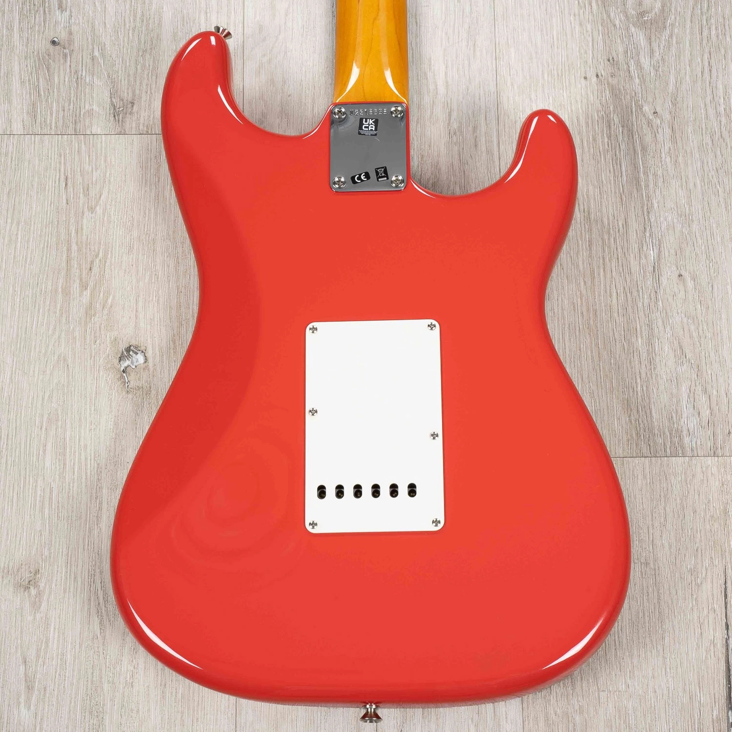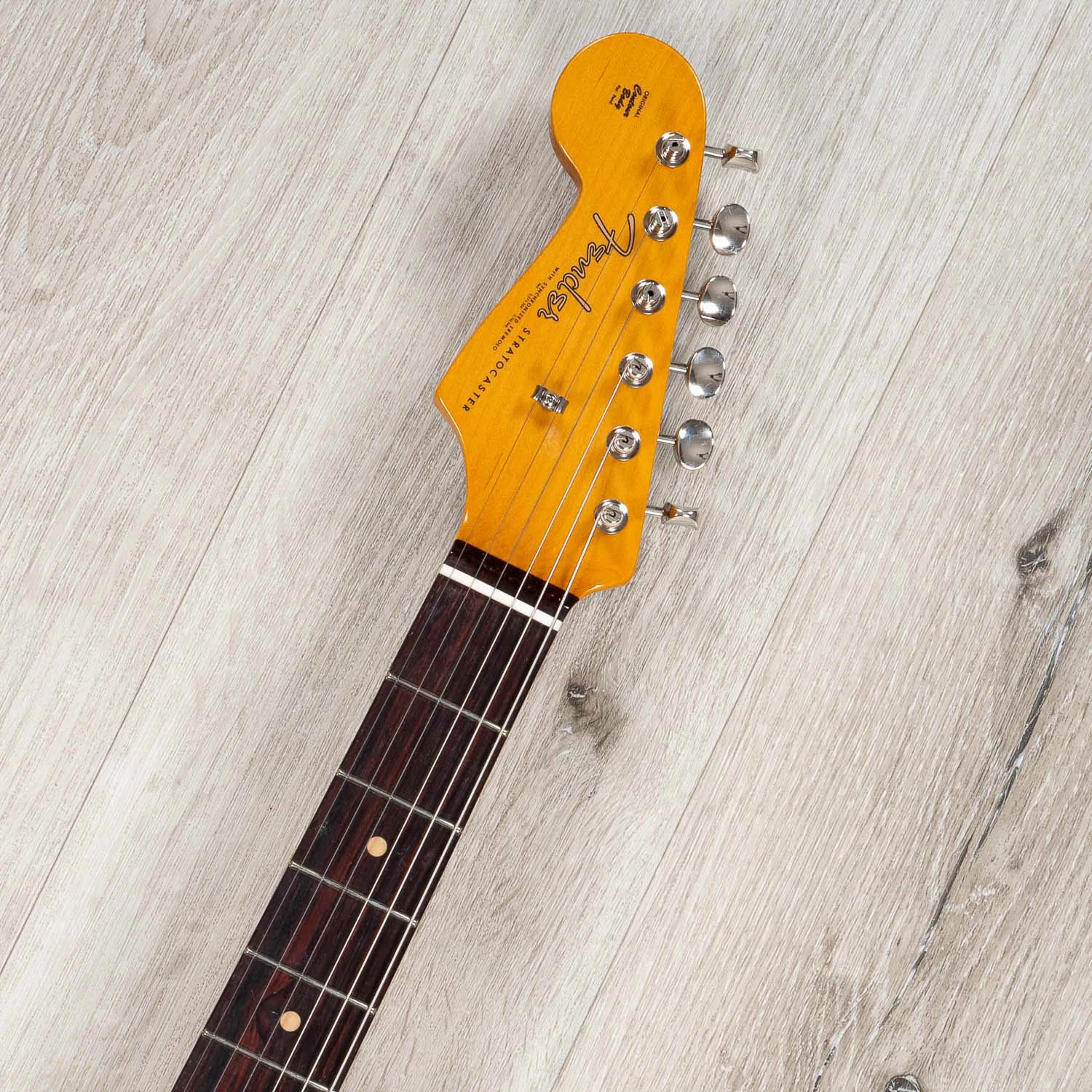 During the late ‘50s and early ‘60s, the popularity of Fender musical instruments flourished, and although the Fender assortment had expanded to include many great new instruments, the Stratocaster® reigned supreme. By 1961, the Stratocaster had taken on a more refined aesthetic, with a 3-Color Sunburst reformulated with a more vibrant red and bolder black edge, topped with a 3-ply pickguard accenting the Strat’s signature curves.