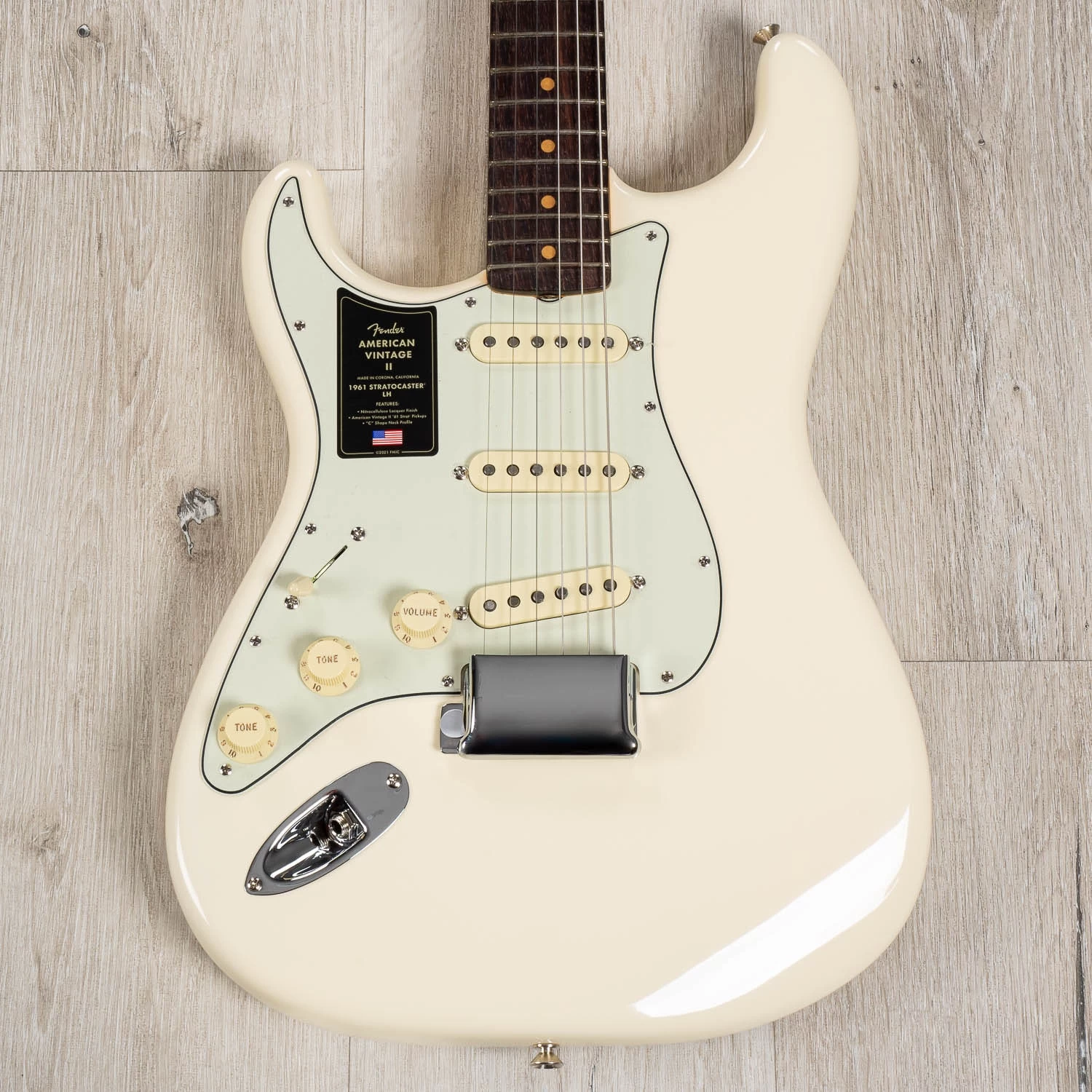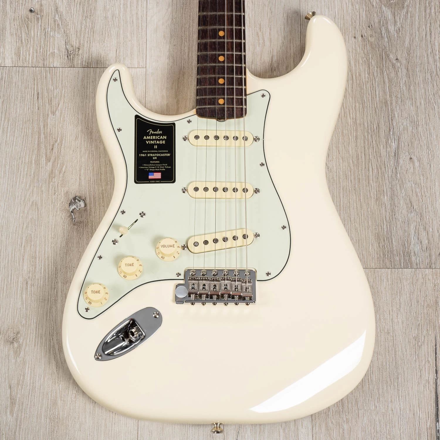 Finally, some love for the lefties! And Fender decided to show it in the best of ways with this gorgeous new lefty American Vintage II 1961 Stratocaster in Olympic White with a beautiful slab rosewood fretboard. The new American Vintage II series brings back the original “American Vintage Reissue (AVRI)” of old with improved upon pickup design, more accurate neck shapes, and other period-correct specs. A lot of us here at the shop grew up lusting after those guitars and we’re glad to finally get these into our hands years later.