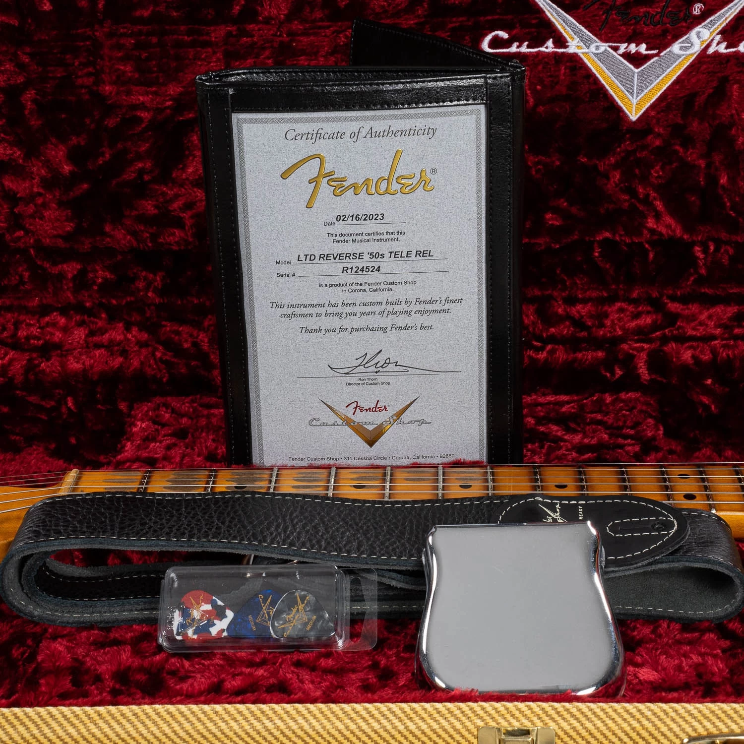We’re stoked to bring you another beautiful creation from our friends over at the Fender Custom Shop! This stunning Reverse ’50s Telecaster Relic is part of a group of eleven very special one-of-a-kind instruments we took home at the Fender Custom Shop Spring & Summer 2023 Event.