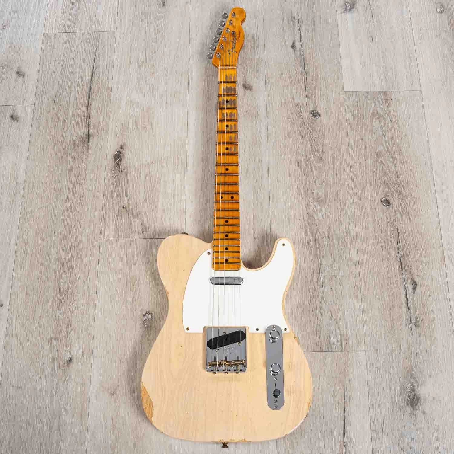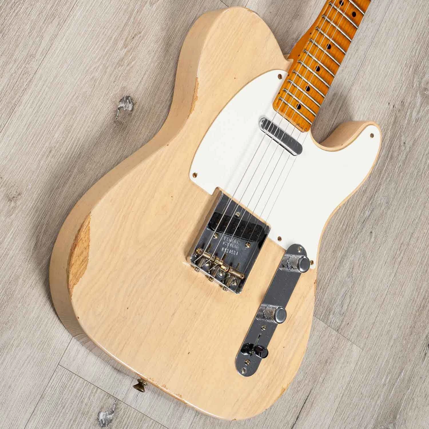 This gorgeous guitar has all the ingredients that make a ’50s Fender Telecaster incredible and the aesthetic touches that truly make it a convincing vintage recreation, along with a few other tricks up its sleeve. It’s finished in a a gorgeous aged White Blonde, our favorite finish for a ’50s Tele, and comes with a gorgeous one-piece riftsawn maple neck that’s been tinted to perfection as well as an excellent medium relic pattern that remains tasteful whilst having the worn-in look and feel of a well-loved guitar.