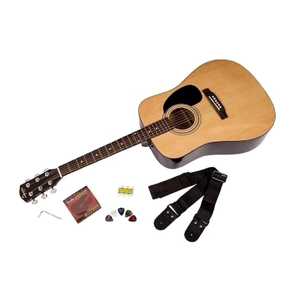 Includes: Squire acoustic guitar, picks, strap, strings
