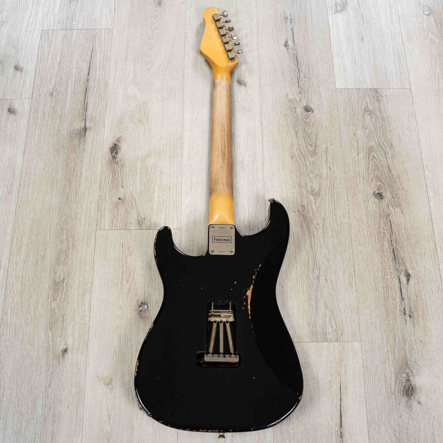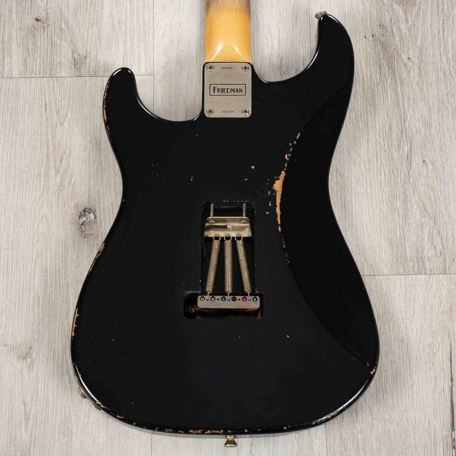 Friedman guitars are back! Here’s a gorgeous Vintage-S HSS with a maple neck and rosewood fretboard, finished in a classic light-aged Black finish with a tasteful tortoiseshell pickguard.