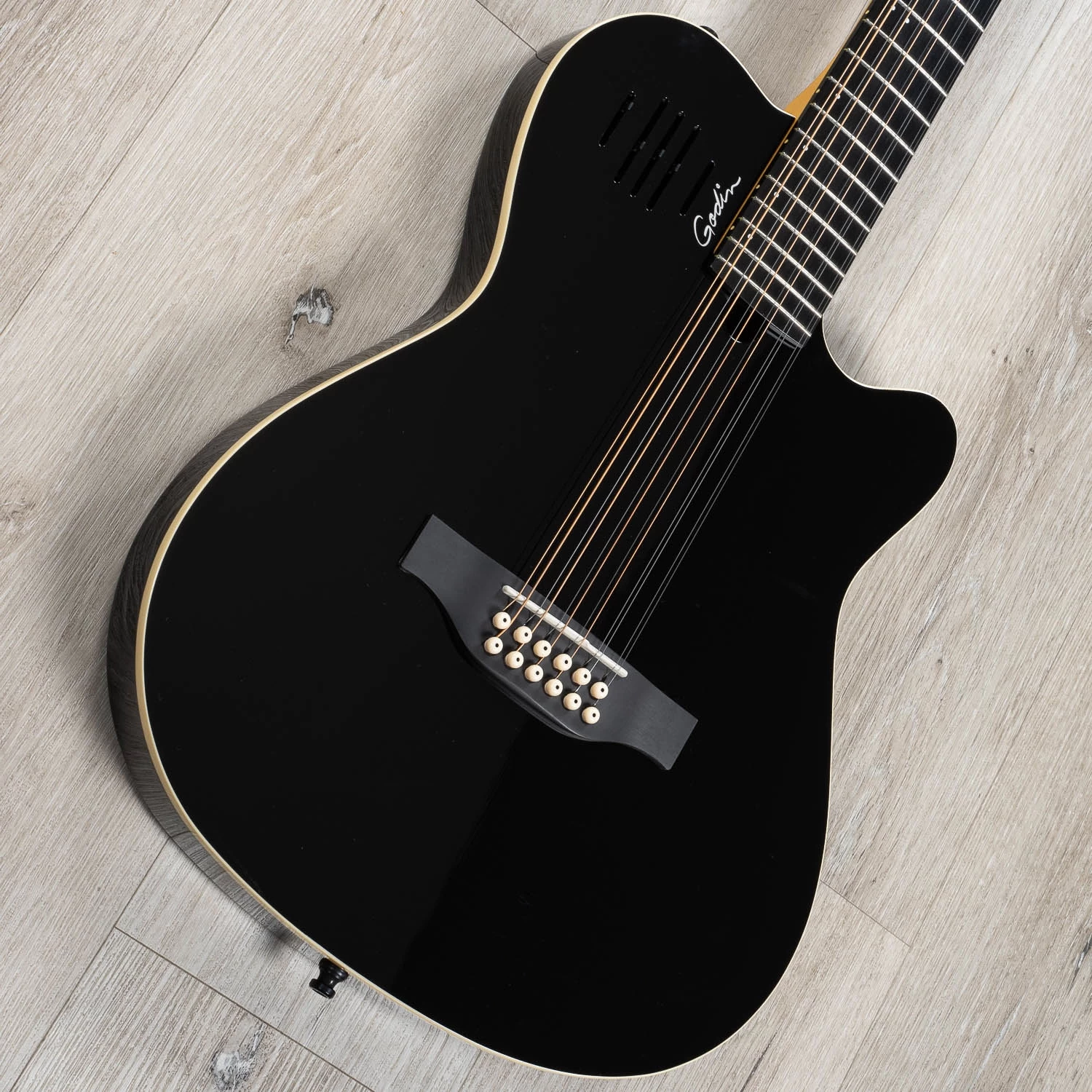 The A12 Black HG brings incredible 12-string sound and playability to the table, along with a look that is classy yet unapologetic! The light two-chambered body makes this guitar easy to perform with, while the Richlite fretboard helps you move around the neck with ease. Custom Godin onboard electronics give you total control to shape your overall sound as desired and, like the rest of the acclaimed A-Series; the A12 Black HG is virtually feedback-free!
