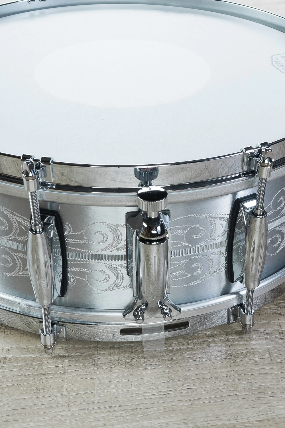 For those who want to mark the occasion by adding to their prized snare collection, we offer the Gretsch 135th snare drum. Each 5″ × 14″ 8-lug solid aluminum shell is hand engraved by master engraver Eric Sooy and assembled with 301 single flange hoops with mini-claw hooks, Lightning Throw-Off and snap-in key holder and custom REMO USA-made Permatone heads. A limited edition deluxe carrying case is included with the drum. Production of these unique collector’s items will be limited to 135 units.