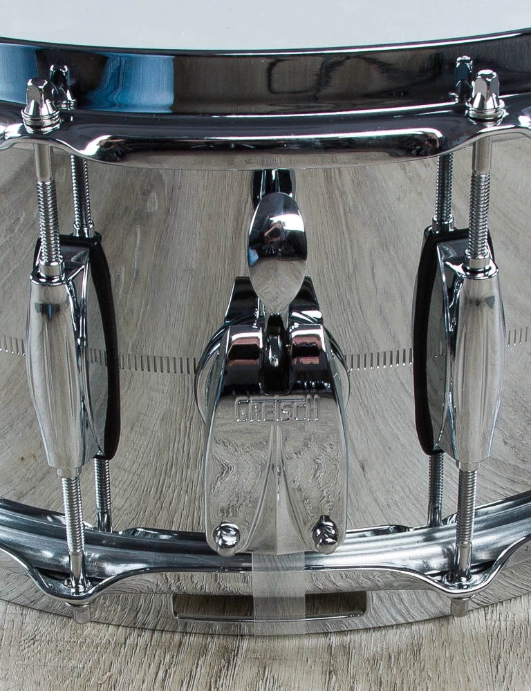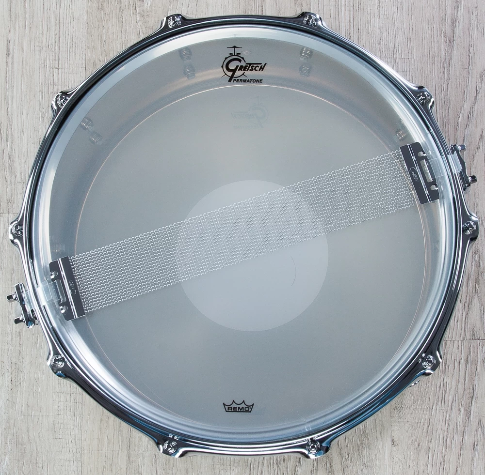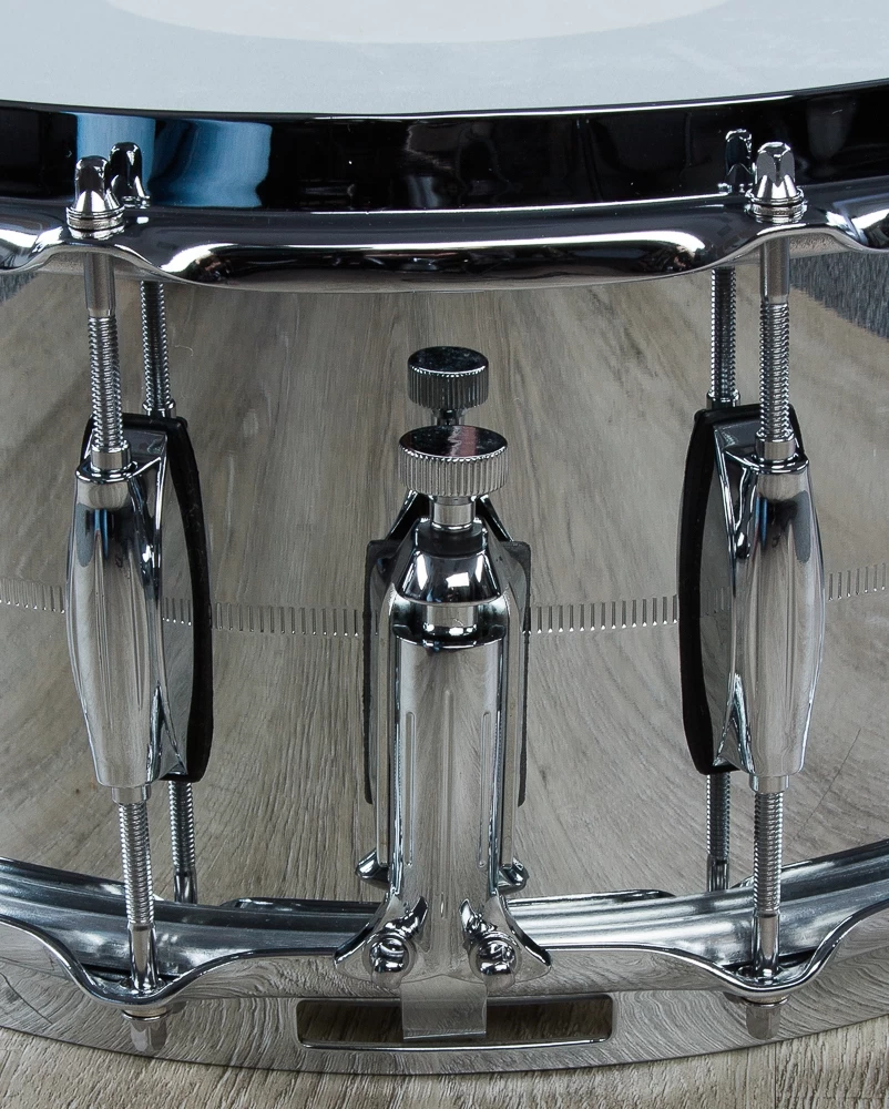 Gretsch’s Brooklyn steel snare is perfectly happy tuned up and crackin’. Or tune it down – and you’re wielding a cannon. Amazingly, the Brooklyn steel doesn’t lose its bark in low tunings, and will still cut through a thick mix like a hot knife through butter. With its awesome, versatile sound, a cool chrome-plated finish, and Gretsch’s bundle of drummer-friendly features, this snare drum is an amazing value. So get big steel with Gretsch’s Brooklyn Steel Snare.