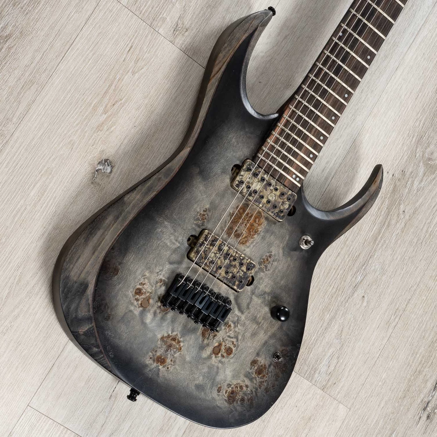 Ibanez RGD71ALPA RGD Axion Label 7-String Guitar, Macassar Ebony Fretboard, Charcoal Burst Black Stained Flat