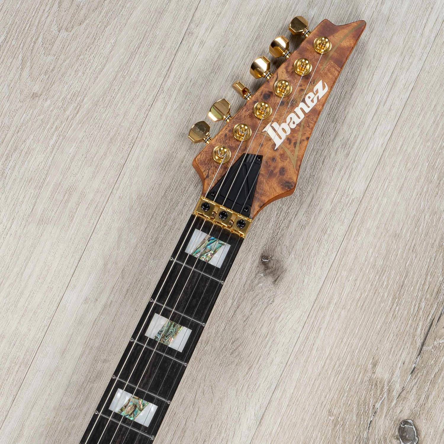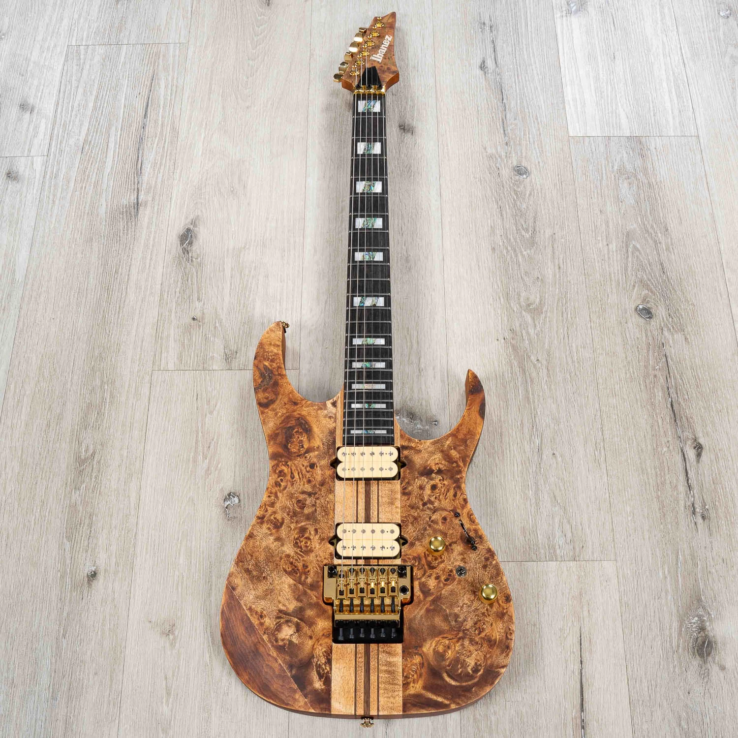 Ibanez’s thin, flat and fast Wizard neck is strong and sturdy and offers unlimited playability and features a two-octave 24-fret fretboard for a wide tonal range.