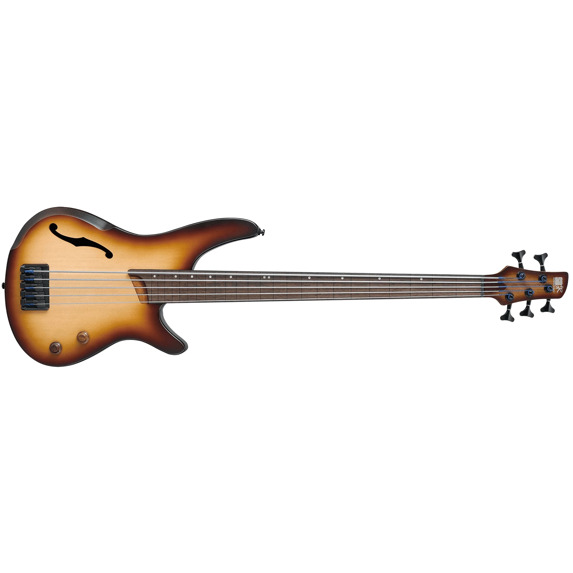 Ibanez SRH505F 5-String Fretless Hollowbody Bass, Natural Browned Burst Flat