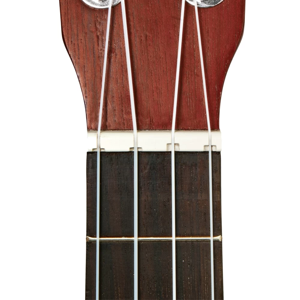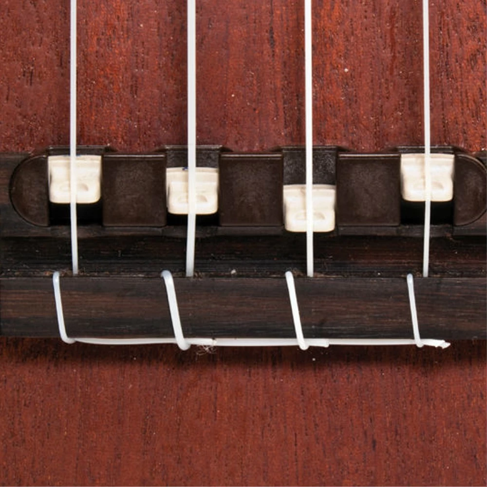 The TunaUke saddle housing mounts directly to the top of the instrument which increases overall projection and a full spectrum of lows, mids and highs. We provide two sets of saddles (low and high) to allow you to adjust your string height to its most comfortable level. The newly designed 8 hole bridge allows for quicker string changes, but can also be used in the traditional classical string tie.