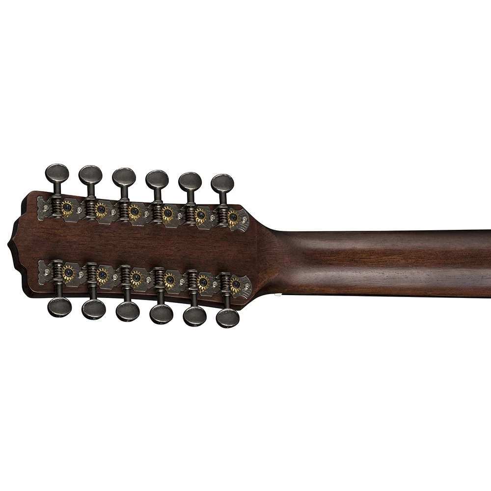 Expanding on the popular Vintage Series, the 12 String Vintage Dreadnought Cutaway acoustic guitar adds a richer tonal variety to the line. Easily amplify your sound and dial it in quickly with the onboard Fishman Isys+ preamp system with onboard tuner. From the vintage distressed brownburst finish to the brushed nickel open gear tuners, the 12-String Art Vintage Dreadnought Cutaway will stand out on any stage with its distinctive rustic look and solid-built construction. Its distinct looks include cream multi-ply body binding and pearl moon phase inlays. Musicians can expect full warm yet vibrant tone from the strong mahogany body and solid spruce top. The most common 12-String tuning is E3E2A3A2D4D3G4G3B3B3E4E4 – theres a good chance youll see one of these on the Grand Ole Opry stage! Join the Luna Tribe.