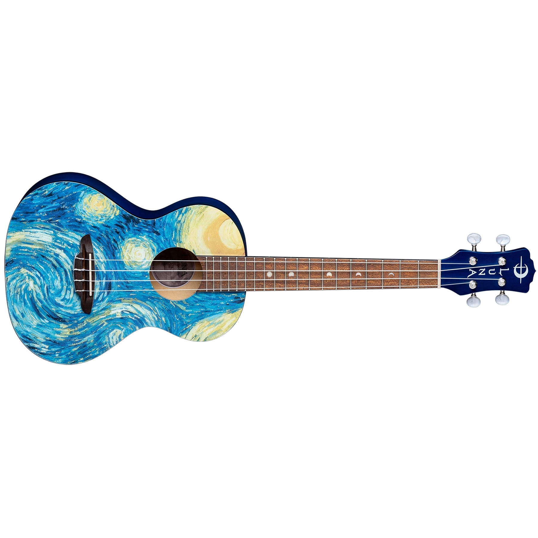 “This morning I saw the countryside from my window a long time before sunrise, with nothing but the morning star, which looked very big.” These words were written by van Gogh, to brother Theo, describing his inspiration for one of his paintings. Nothing inspires creativity more than an eccentric painting with a significant historical significance. The Uke Starry Night Tenor encourages uke players to truly “Play the Art of the Music” – Creativity inspires all! Beautifully handcrafted from mahogany and a walnut fretboard, this uke boasts quality construction to match its sound and stunning design. Whether youre looking to mic this ukulele up on the big stage or join the writers round, a Luna uke is perfect for all skill levels. This tenor uke boasts a deep but loud, resonate sound both by virtue of its tenor body with maple top and mahogany body. Gig bag included.