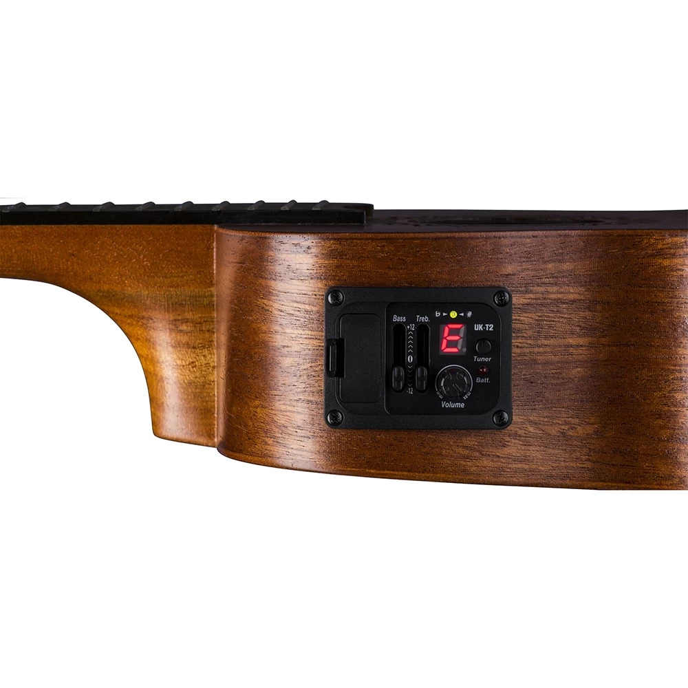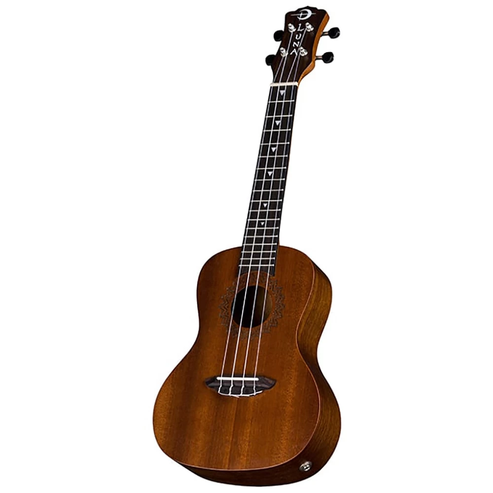 Luna brings a full-featured, all-mahogany ukulele at a stunningly low price with the new Vintage Mahogany Concert Electric Ukulele. The mahogany body, and rosewood bridge and fretboard add sustain and clarity to your tone. The open-style tuners keep the instrument in precise tuning and the onboard Luna UK-T2 preamp with onboard tuner provides easy amplification that can be dialed in quickly. This uke sounds as great as it looks. A wonderful instrument for players of all skill levels. Join the Luna Tribe today!