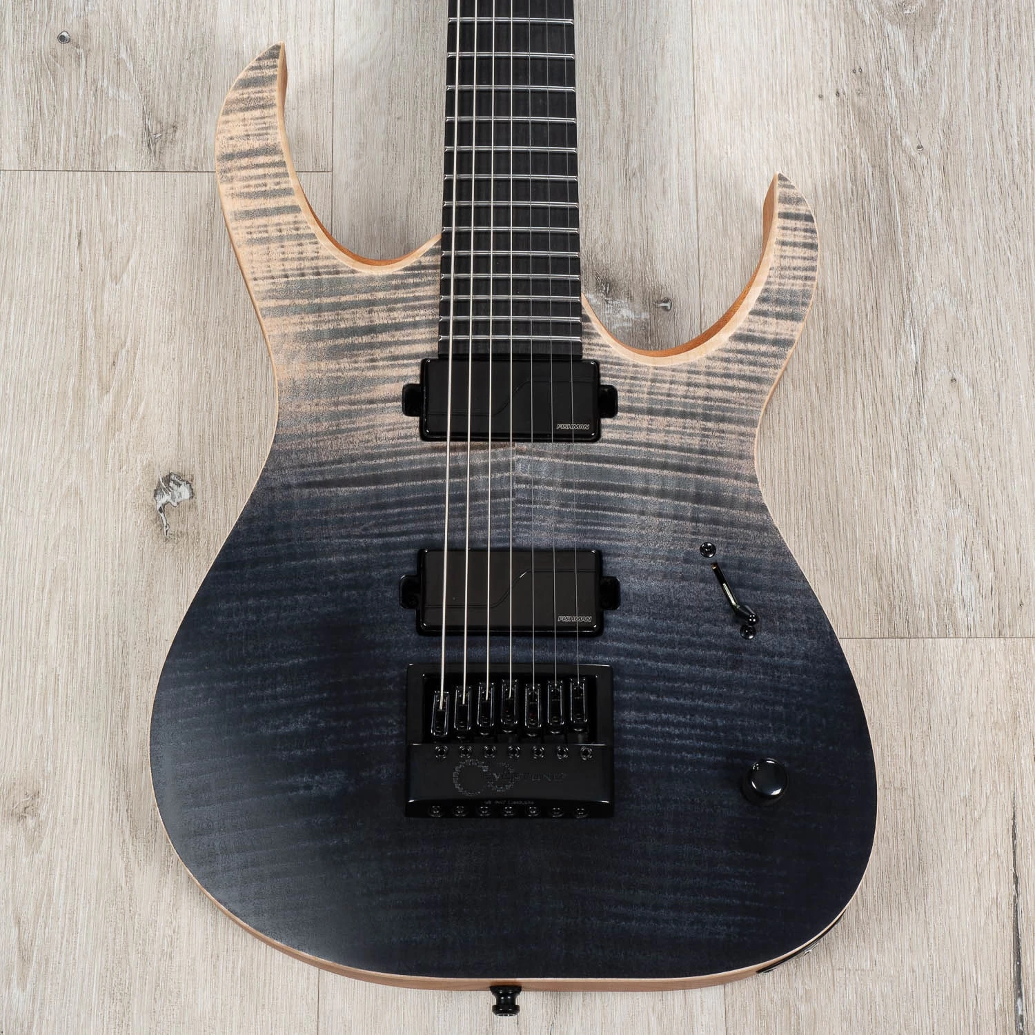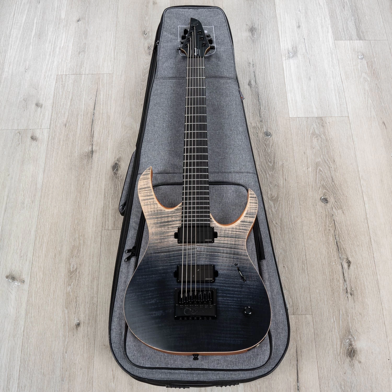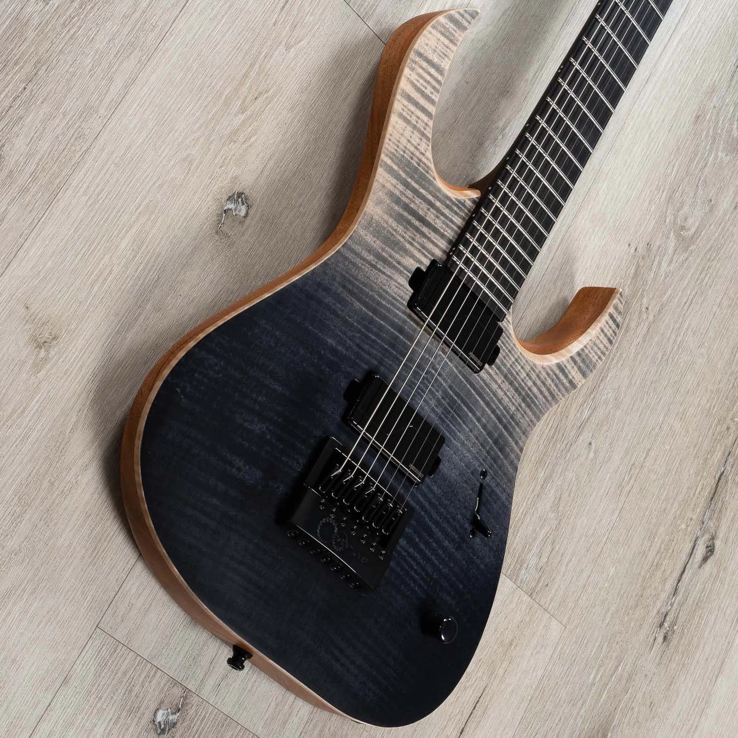 We are proud to offer up this gorgeous Duvell Elite 7 4Ever from our friends over at Mayones! This beauty is in a gorgeous Transparent Jeans Black Horizon Matt gradient finish and features a stunning Flame Maple 3A top, features you normally can’t get on a production Duvell.