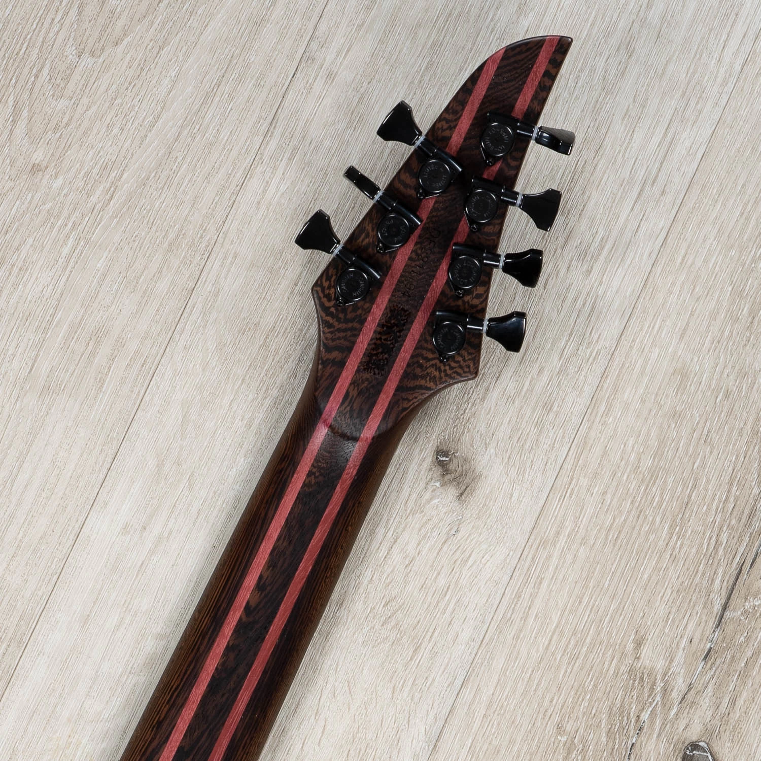 The low-B is tight, punchy, and really brings the thunder. It doesn’t have any of that wobbliness that you can sometimes encounter. Flying up and down the neck is a breeze and whether you’re playing chords, ripping lead-lines, or using both hands to do some fancy fretboard tapping, you’ll find this guitar to be super expressive and the notes just jump right out with minimal effort. Plus the craftsmanship is so good that you can really get shredder-level low action with ease.