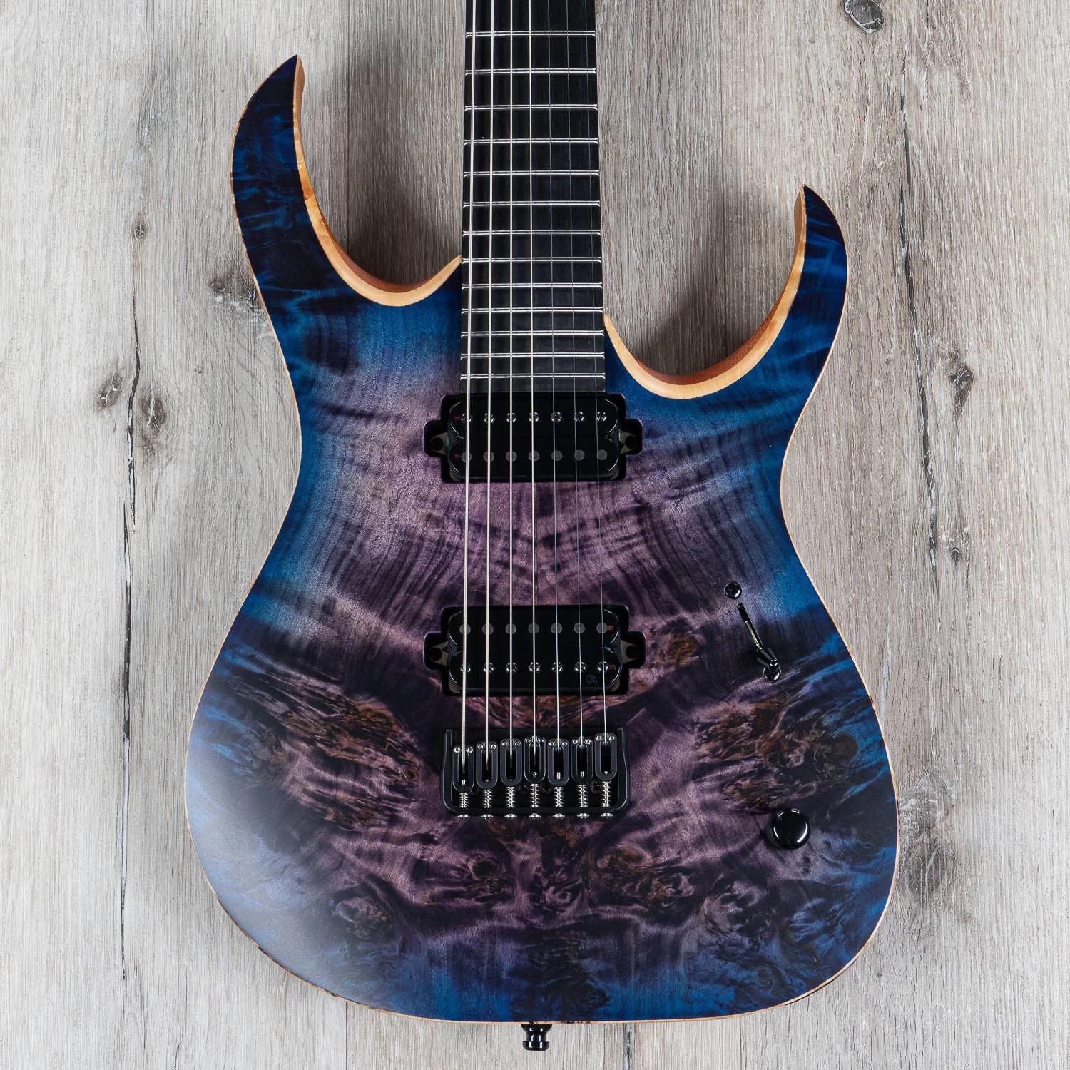 A simple master volume control (with push/pull coil-splitting capability) makes this a no-fuss 7-string shredder’s axe that always sounds great and won’t leave you with any hand fatigue after long sessions or shows.