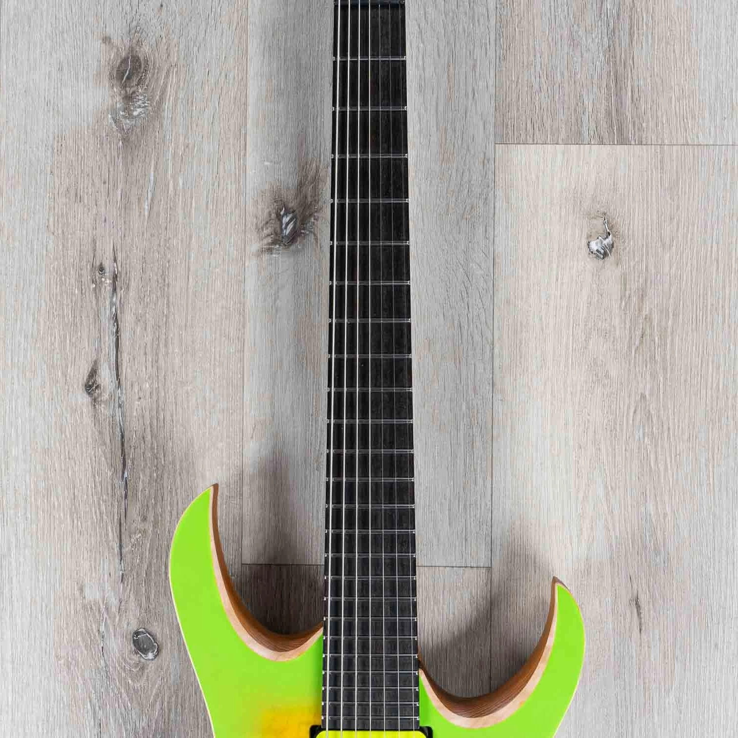 Offering some of the highest quality craftsmanship we’ve ever come across, Mayones is building some absolutely killer guitars that have not just metal rockers turning their heads to take note. The neck on this 7-string is extremely comfortable and is nice and thin so you can fly up and down on it.