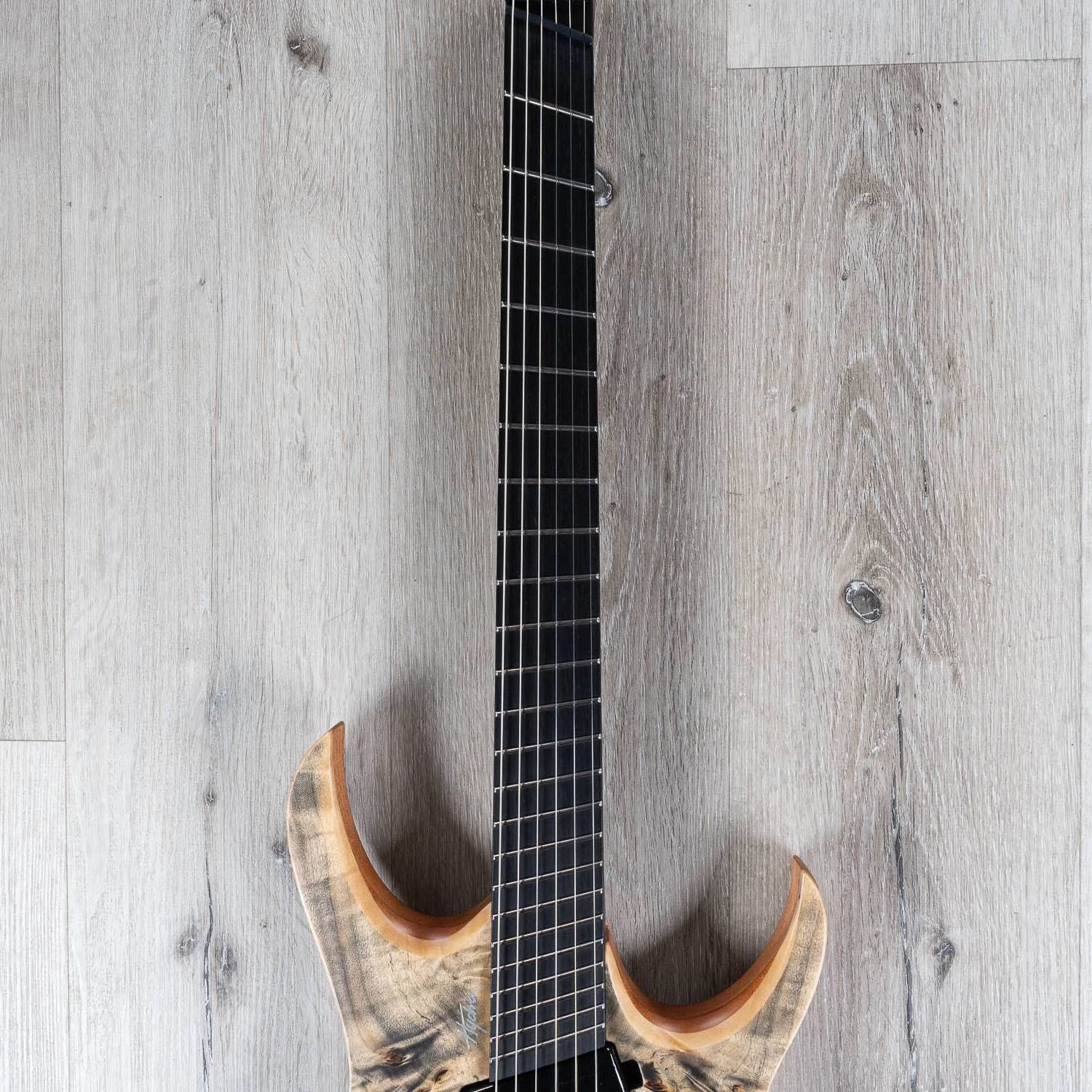 The neck is extremely comfortable, the pickups are hot and in-your-face, and the construction is absolutely flawless… All it needs is a master to tame the dragon. It takes virtually no time to get used to playing the multi-scale design and the benefits are immediately noticeable. Every string sits at the perfect tension and, especially for anybody that likes to down-tune, you may never go back to a non-multi-scale instrument after getting acclimated to one, not because you can’t, but because you simply won’t want to.