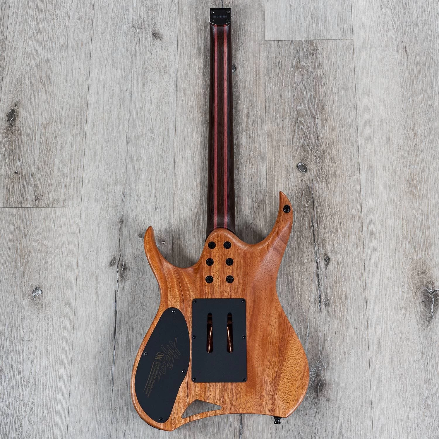This guitar is aggressive and super fast to play and if you’re not careful, it could just bite your head off, too… The irony, of course, being that a Hydra is a many-headed serpent from Greek mythology. This guitar, however, is headless. Easy to transport (especially on airplanes) and easy on the shoulders and back, there are some definite advantages to the slimmed-down and sleek design concepts in this guitar. Blazing lead licks up and down the fretboard are a real breeze while complicated chord shapes are still easy to get every note to ring out perfectly.