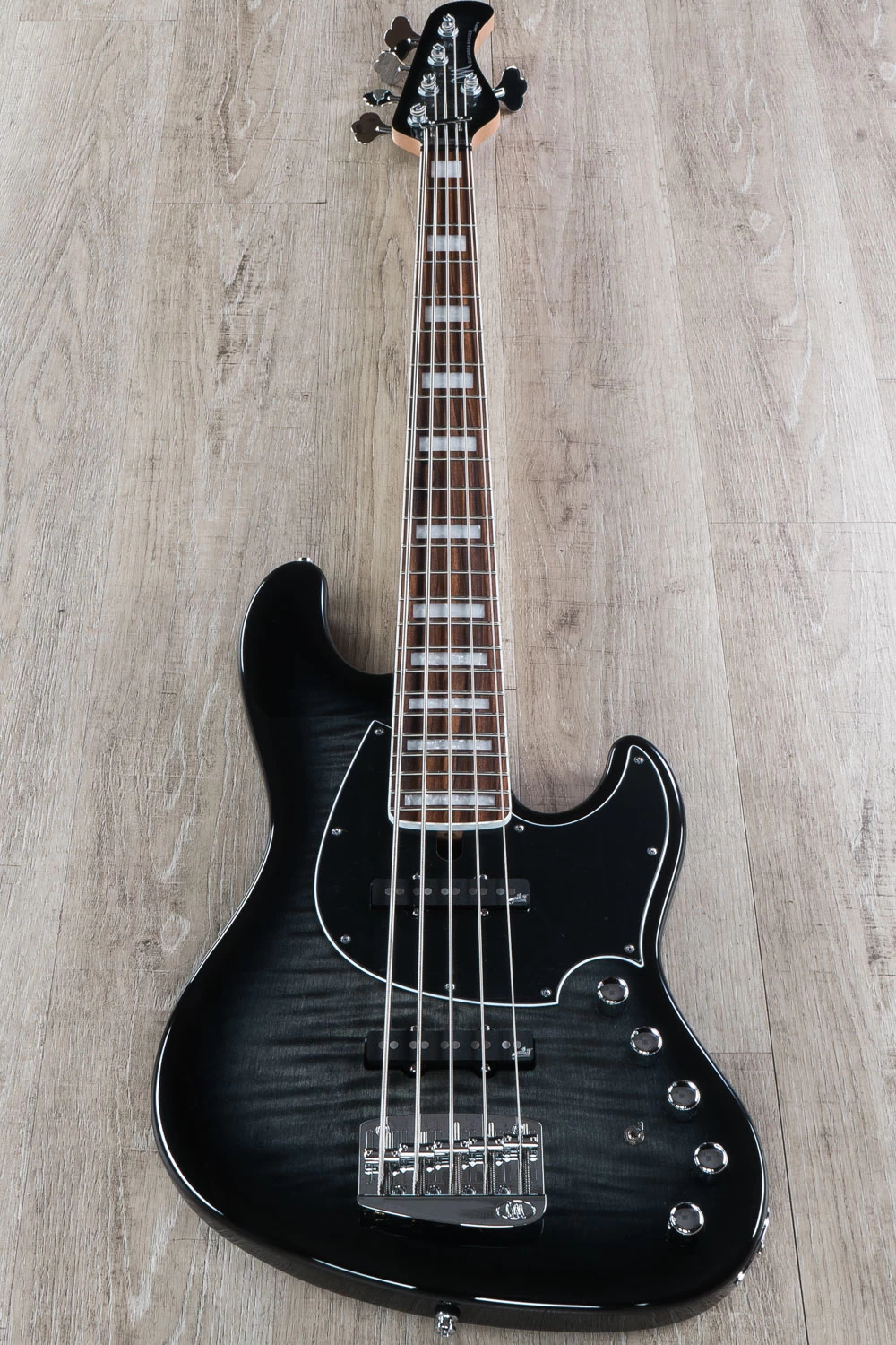 If you’re looking for an axe that has a decidedly modern J-bass sound but still possesses that passive vintage vibe, then look no further! The Mayones Jabba Classic 5 is a modern Jazz bass player’s dream. The Aguilar J-70 pickups have lots of growl and snappiness to them. They’re a bit more vintage sounding than the Delano’s that sometimes come in these. It’s that classic 70’s J-bass tone you’ve likely heard a thousand times (think of Marcus Miller or Geddy Lee’s jazz bass sound, for example). Pair that with the Mayo 2-band preamp that boosts (or cuts) the bass and treble EQs at just the right frequencies and it’s a recipe for success. The preamp is very transparent and hi-fi sounding. But if you want something a little more old-school sounding, it’s also possible to bypass the preamp and play the bass in passive mode.