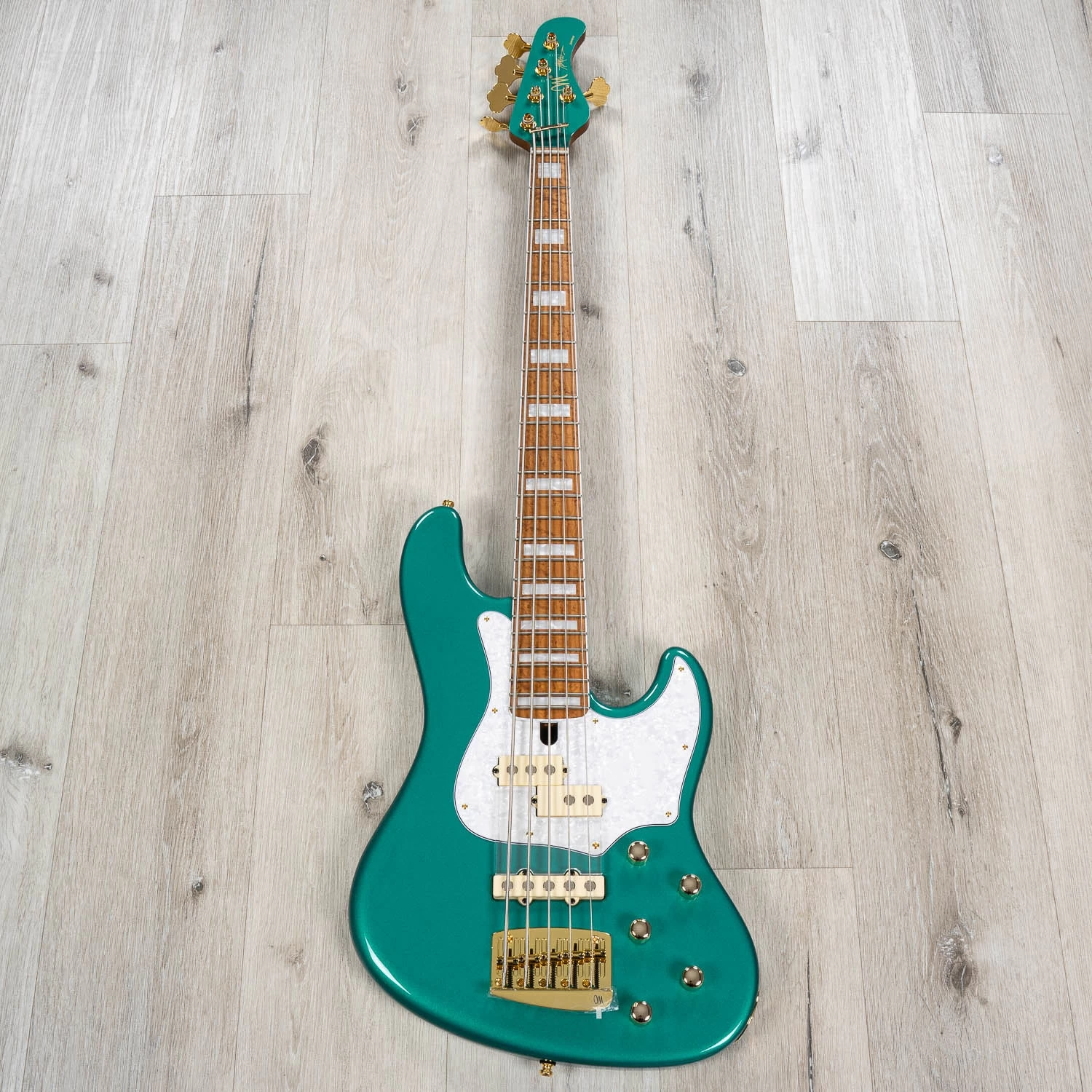 Possessing a unique combination of tonewoods in its sassafras body and maple neck back and highly-figured maple fretboard, this Jabba HF5 stands out as a vintage-inspired instrument with modern sensibilities. 24 frets allowing greater access than a standard J, the flat fretboard radius, and modern pickups cater to the contemporary player. Players of all genres will appreciate the Delano PMVC/JMVC pickup set and versatile Mayones preamp that have become synonymous with this series of basses.