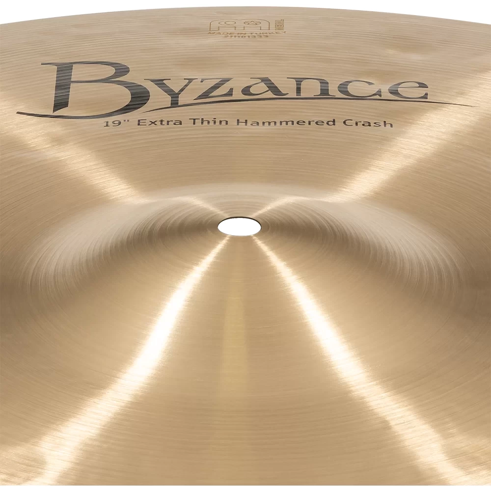 The extreme light weight and the extensive hammer patterns result in a dark, trashy sound with a wide spread and a long sustain. An exceptional crash cymbal!
