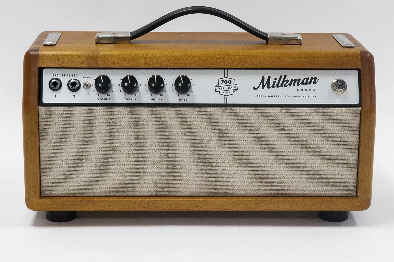 The 700W Half and Half is where the old technology meets the new technology. The preamp is similar to the other all tube Milkman amplifiers: it is hand wired with high plate voltage. The discrete tube preamp section feeds into a Class D power module which scales up to 700 watts. Its the most transparent and exciting sounding hybrid amplifier on the market.