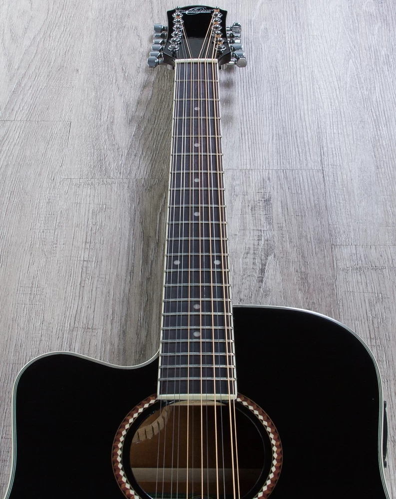 The OD312CE-BLH is a left-handed 12-string dreadnought with a cutaway for easy upper fret access. Its great action makes it one of the easiest playing 12 strings around. The MET-A07 Preamp/Tuner brings out the full lush & chiming sound of all 12 strings through any PA or amp.