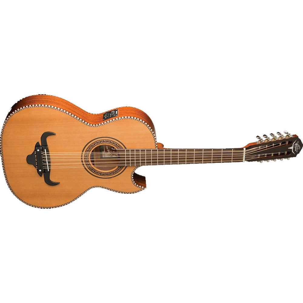 - Rosewood fingerboard and distinctive long horn bull bridge design