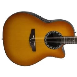 With all the essentials of the classic Ovation Balladeer sound and style, the Applause Balladeer AB24 Acoustic Electric offers a loud and well-defined voice, smooth playability and great value that make it ideal for beginning and intermediate players. Recognized Balladeer hallmarks are here, including the sculpted Applause-style headstock and center sound hole adorned with the classic Applause chevron rosette pattern. Premium features include a laminated spruce top for clearly articulate tone, and a middepth Round back Lyrachord body for greater volume and projection, excellent balance and supreme durability. The guitar also features fast, comfortable action and an easy-playing neck profile, and an Ovation OP-4BT pickup/preamp system with built-in tuner for superior amplified tone and performance.