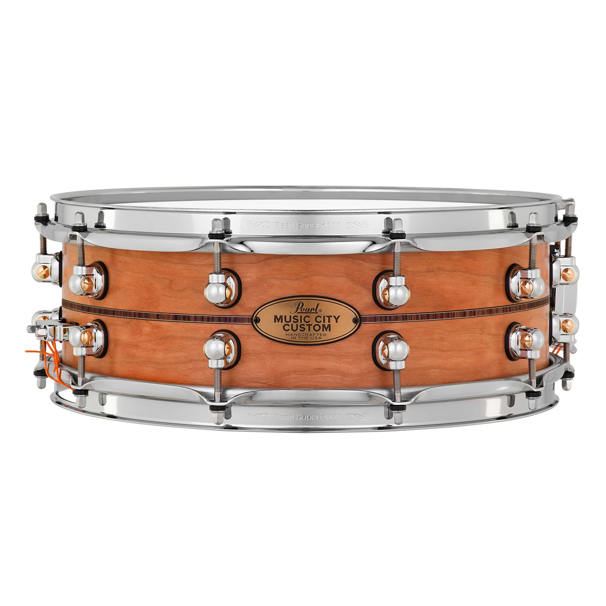 This unique Music City Custom Solid Shell Snare Drum features a single center inlay of Brazilian Kingwood, our elegant single STL swivel lugs, Stainless Steel tuning rods, and SuperHoop II triple-flanged hoops. Honed by a singular artisan with time-honored precision, Pearl’s Music City Custom Solid Shell Snare Drums are uniquely refined, American-made percussion instruments. Beginning with a steam-treated plank of premium North American Cherry, each Music City Custom solid shell is shaped using an old-world crafting technique derived from ship-building. Hand-milled to a smooth, uniform 8mm thickness and combined with Solid Maple reinforcement rings, each shell is CNC drilled, hand-finished, and assembled at Pearl’s Music City Custom Shop in Nashville, TN. The distinctive tonal nature of this one-of-a kind percussion instrument make it a true an investment in the ultimate drumming voice.
