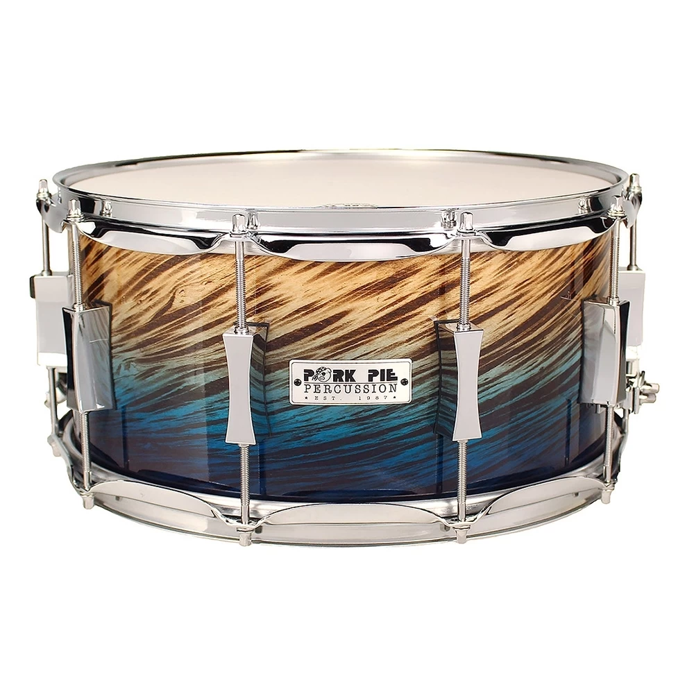 Exotic shells.Pork pie has been using exotic shells when available. Pork pie has made drums with Walnut, Oak, Mahogany, Cherry, Birch and a mix of woods such as Cherry Bubinga, Maple Oak, Walnut Bubinga to name a few.