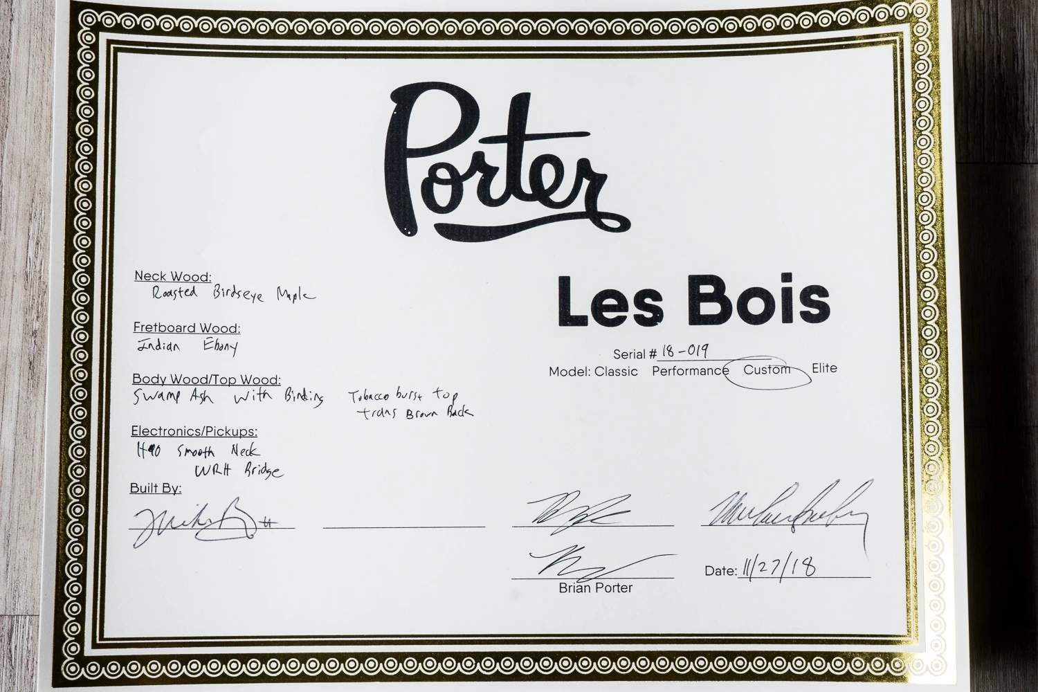 Music Store Live is proud to present this Les Bois Custom by Porter Guitars!