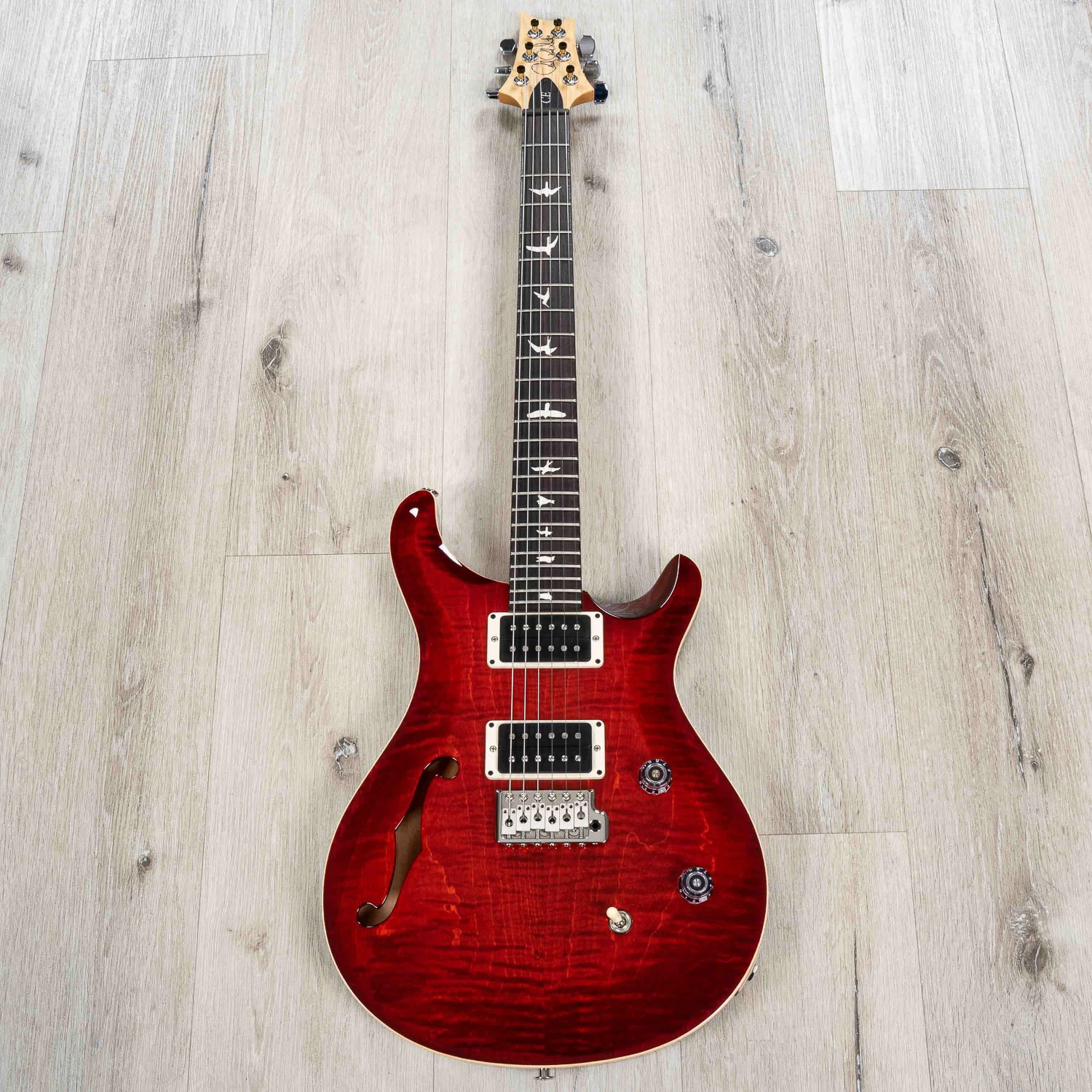 We’re proud to present this PRS CE-24 Semi-Hollow in a striking Fire Red Burst finish! The CE 24 is one of our topmost favorite guitars in the PRS lineup, and the recent addition of a semi-hollow variant elevates it to a whole new level.