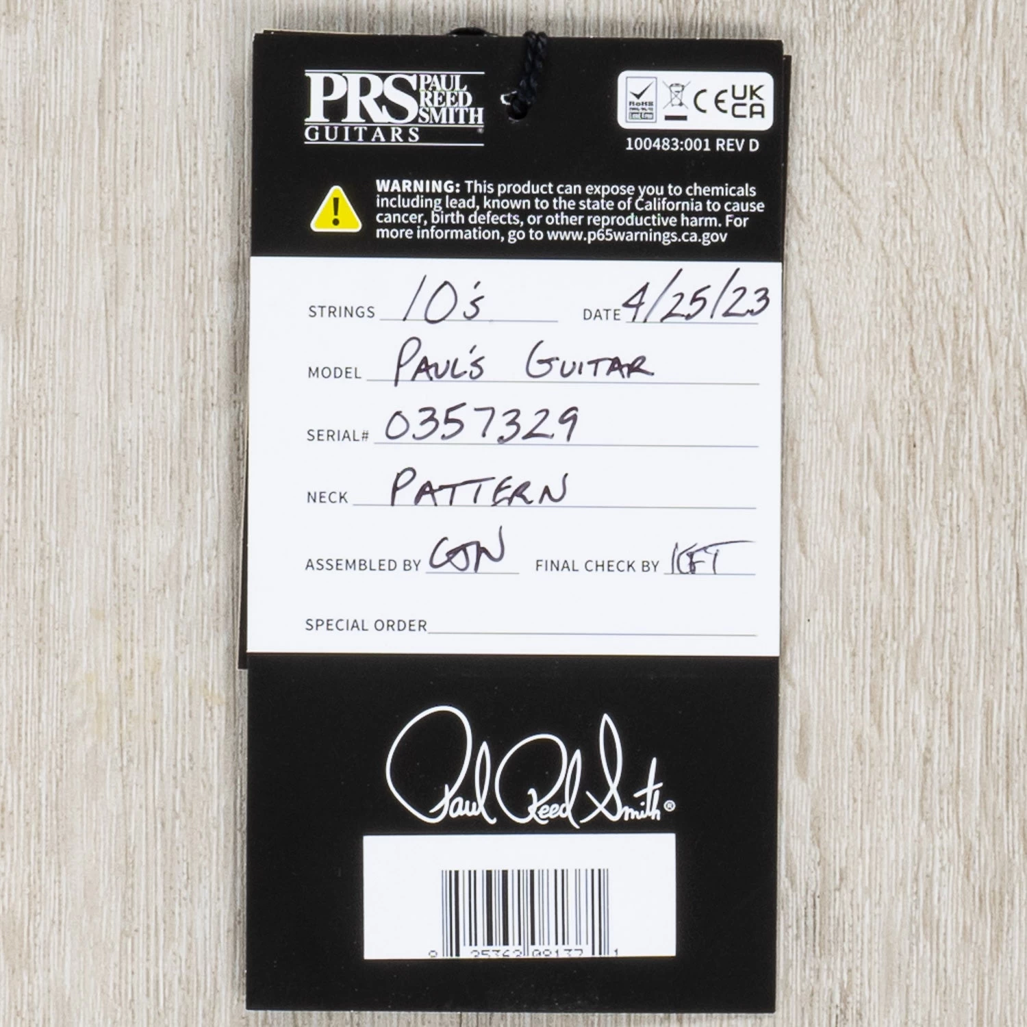 Historically, the Paul’s Guitar (like the Modern Eagle before it) has been a realization of Paul Reed Smith’s latest discoveries surrounding tone. Paul specified every appointment of this instrument from the wood selection and inlay design to the pickups. This revamped model represents Paul’s vision not only as a guitar maker but as a guitar player who needs versatile stage- and studio-ready gear that can achieve all the right tones. As a man who has every option available to him, Paul’s personal design choices include mahogany bodies with maple tops, Honduran rosewood fretboards, Nitrocellulose finishes, “Brushstroke” bird inlays, and narrow pickup bobbins. The Paul’s Guitar model also includes PRS’s TCI (Tuned Capacitance and Inductance) treble and bass pickups with two mini-toggle switches that allow players to put either or both pickups in either humbucking or true single coil mode.