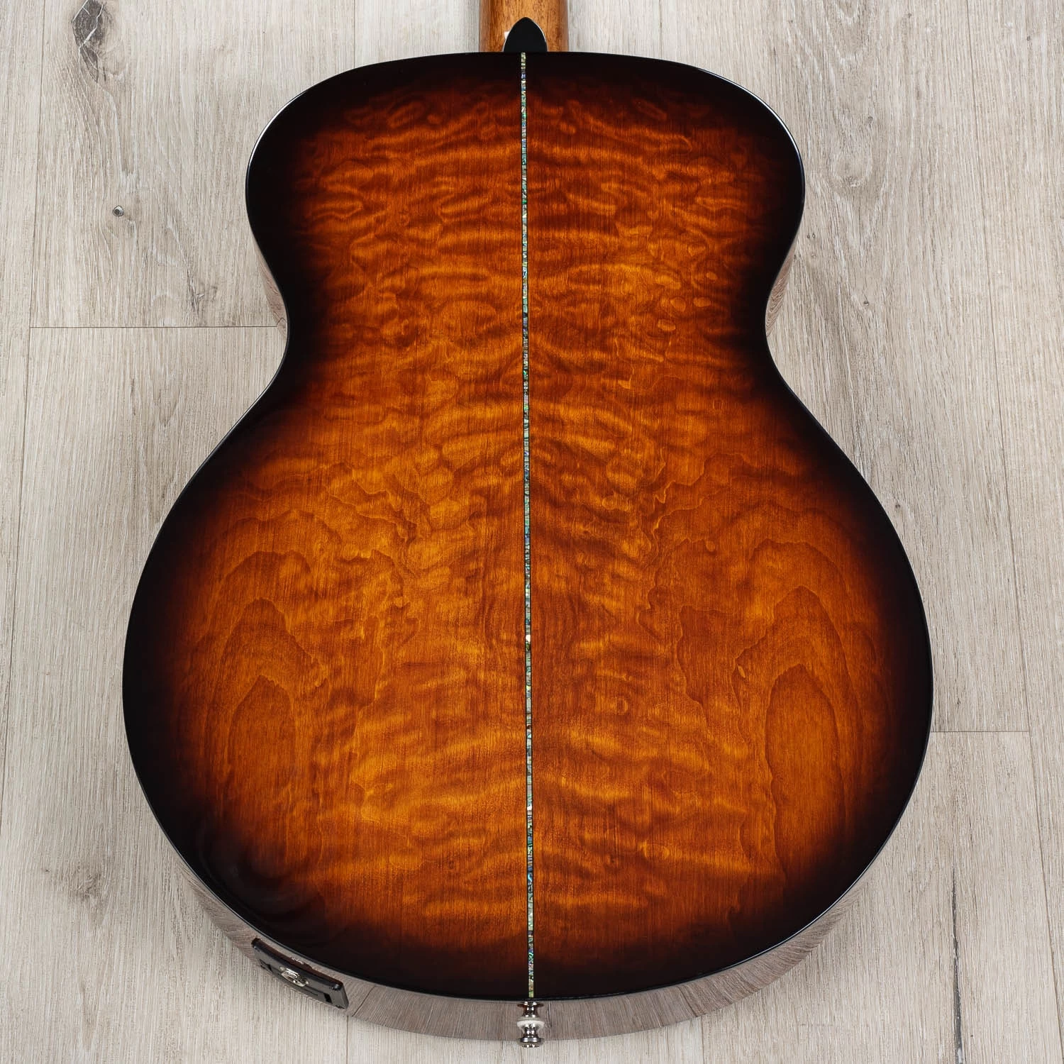 This model features stained Black Gold quilted maple back and sides. Additional high-quality features include a solid spruce top, ebony fretboard and bridge, bone nut and saddle, as well as PRS trademark bird inlays and headstock design. Ships with a high-quality hardshell case.