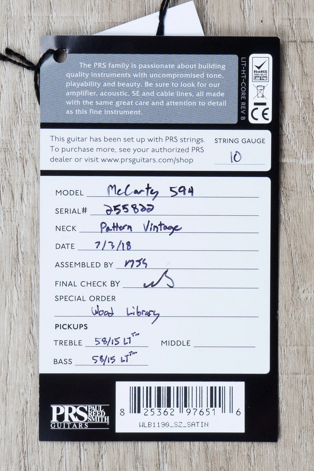 - Paul Reed Smith Wood LIbrary McCarty Singlecut 594